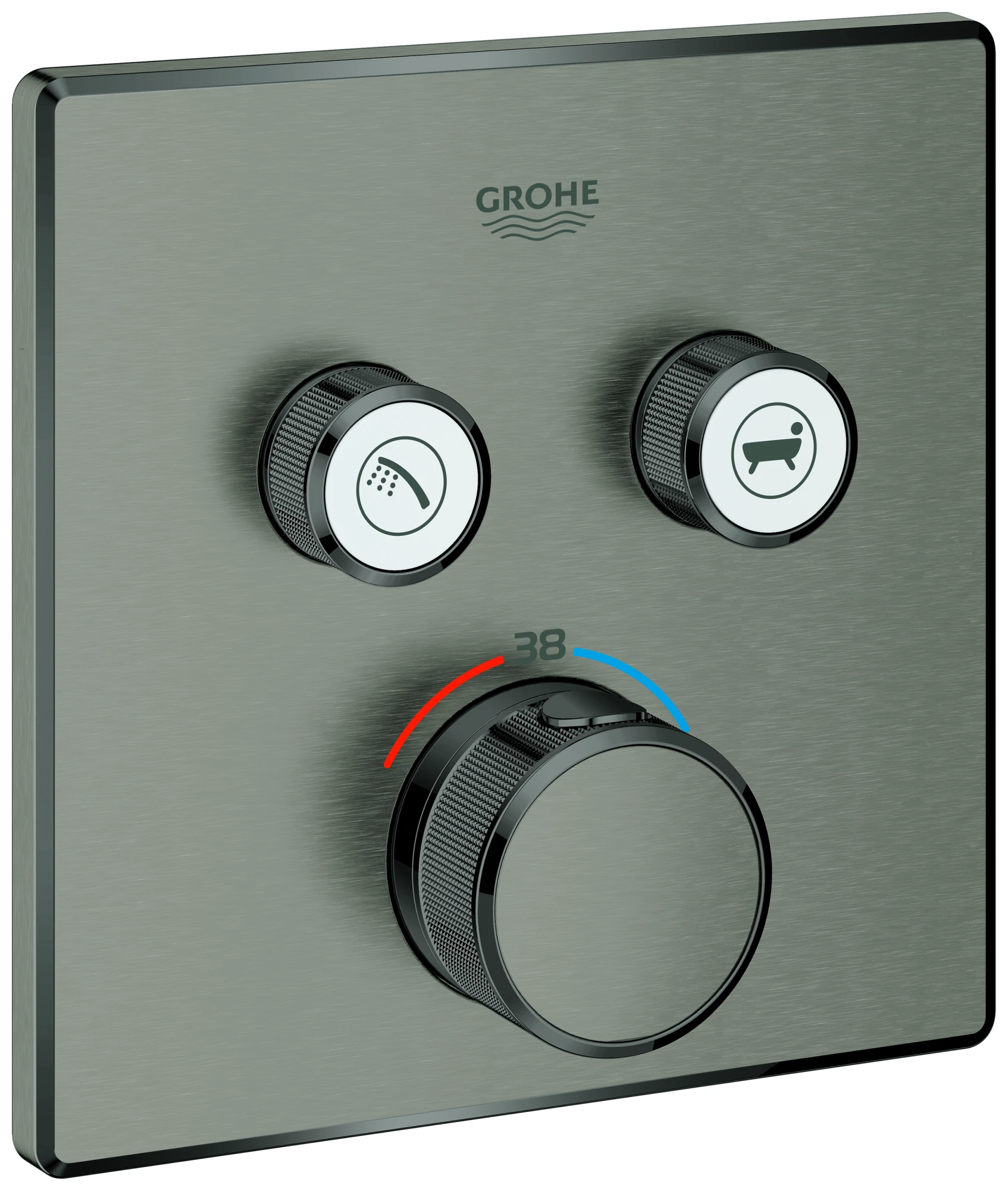 Grohtherm SmartControlThermostat mit 2 AbsperrventilenFertigmontageset für GROHE Rapido SmartBox (35 600/35 604)Wandrosette aus Metall mit GROHE FastFixation mit verdeckter Rosetten- und Schaftabdichtung, verdeckte Befestigung, nachträglich 6° ausrichtbarGROHE Long-Life Shine OberflächeGROHE SmartControl: An/Aus per Knopfdruck und Volumensteuerung durch Drehenauswechselbare SymboleGROHE TurboStat Kompaktkartusche mit Dehnstoff-ThermoelementGROHE ProGrip mit RändelstrukturGROHE SafeStop Sicherheitssperre bei 38°CGROHE SafeStop Plus optional einsetzbarer Temperaturendanschlag bei 43°C oder 46°Ceingebaute Rückflussverhinderer und Schmutzfangsiebegleichzeitige Nutzung mehrerer Verbraucherohne Rohbau-SetDurchfluss: Abgang B = 24 l/min, Abgang C = 26 l/min, Abgang B + C = 29l/minSerie / Kollektion: GrohthermSmartControlModell: 29124Typ: Unterputz-ArmaturDurchflussmenge: 29 l/minAusladung: 0 mmVolumenstromklasse: C Rückflusssicherung nach EN 1717: EB Temperaturregelung: thermostatisch