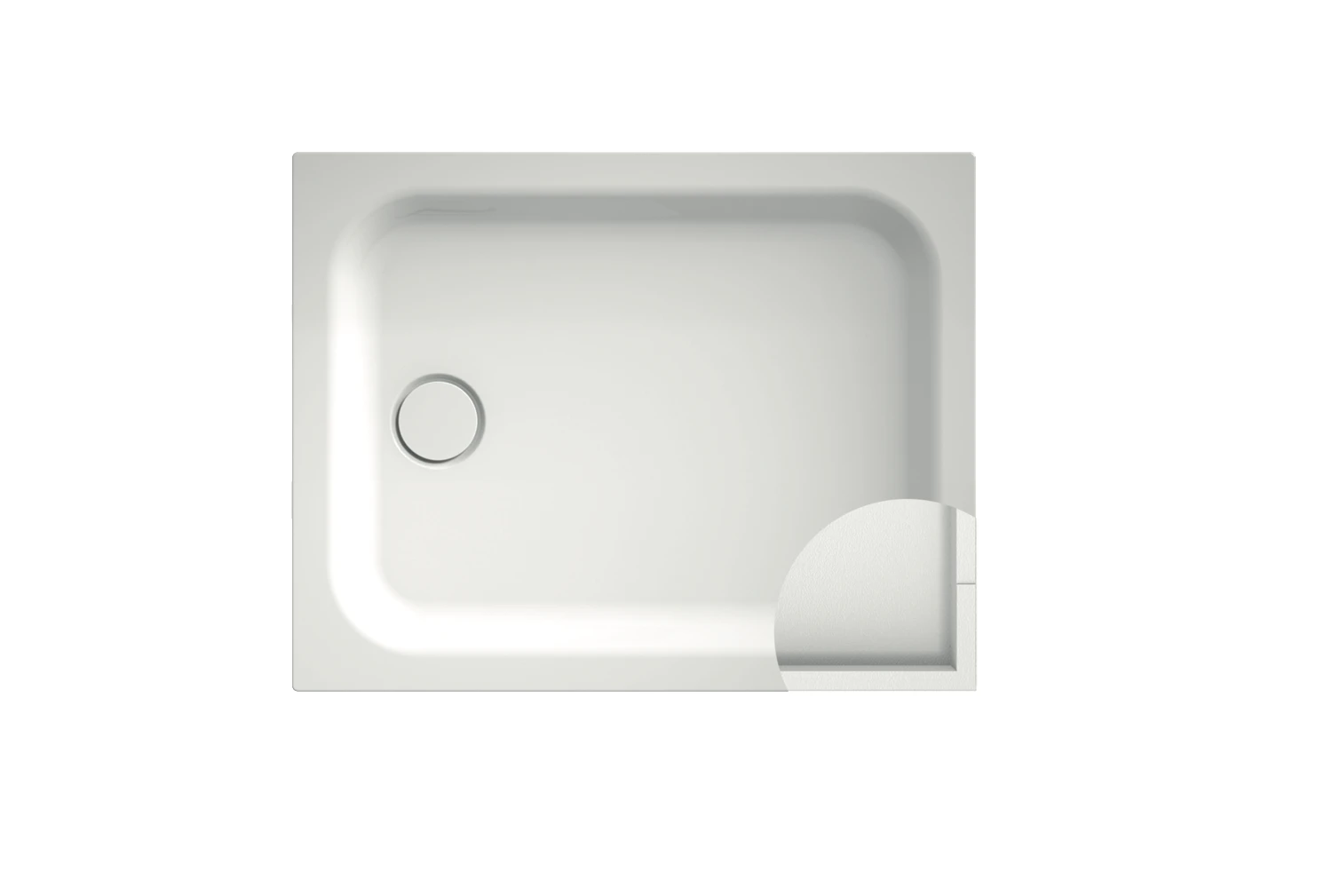 Größe: 100 × 80 cm | Tiefe: 2,5 cm | Oberflächenbeschichtung: mit Vollantislip | Oberflächenveredelung: mit Perl-Effekt | Farbe: alpinweiß | Wannenträger: mit Wannenträger