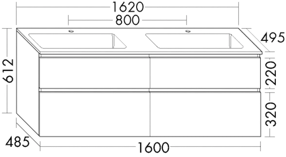 Mi-WT inkl. WTU, Mineralguss-Doppelwaschtisch, Beckenmaß 625x295 mm, Muldentiefe: 100 mm, Waschtischunterschrank, 2 Schubladen oben, 350 mm tief, mit Siphonausschnitt und Inneneinteilung, 2 Auszüge unten, 350 mm tief, inkl. burgbad cleanFlowSerie / Kollektion: Lin20Modell: SGIB162Typ: WaschtischunterschrankMontage: WandSchubladen: 4Soft Closing (Tür): jaTüren: 0Steckdosen: neinBeleuchtung:Innenbeleuchtung: neinWandbeleuchtung: neinAbmessungen:Breite: 1660 mmHöhe: 652 mmTiefe: 535 mm