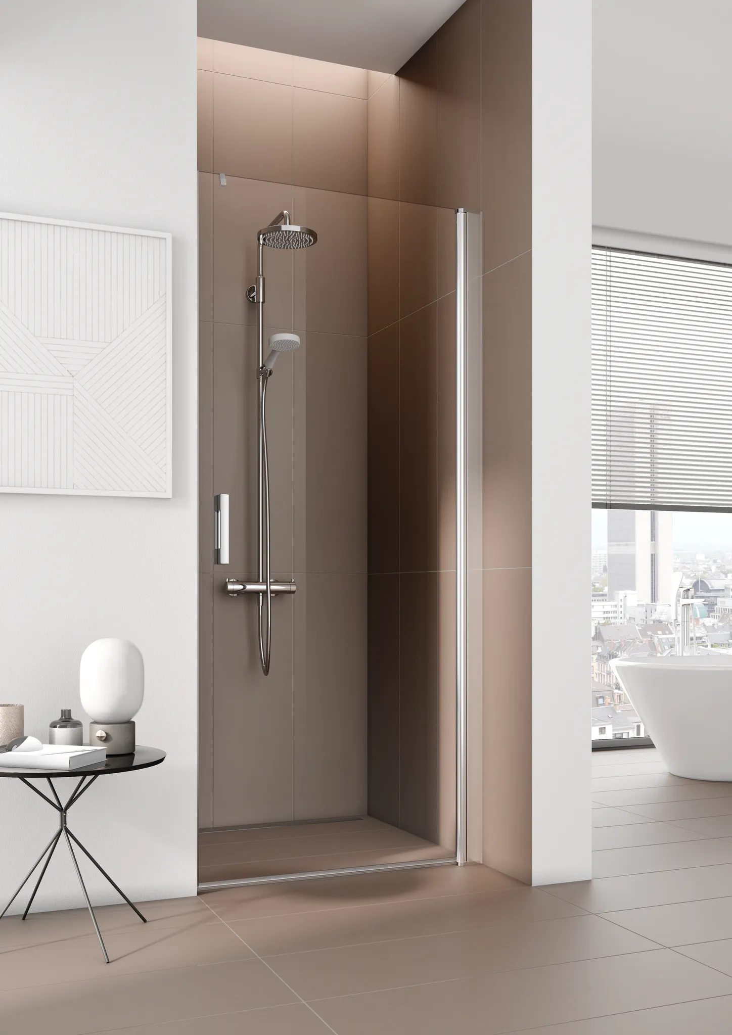 Kermi PEGA Pendeltür 1-flügeligZum Einbau in einer Nische und Kombination mit WALK-IN.Teilgerahmte Tür mit einem Glasflügel, nach innen und außen öffnend.Verglasung mit 6 mm Einscheiben-Sicherheitsglas nach EN 12150, optional mit Pflegeleicht-Beschichtung KermiCLEAN.Profile aus hochwertigem eloxiertem Aluminium, Griffe aus hochwertigem Metall.Verstellmöglichkeit im Wandprofil 25 mm.Türprofil mit Hebe-Senk-Mechanismus.Durchgehende Streifdichtung und Dichtprofile, waagerechte Dichtleiste mit Wasserabpralleffekt.Mit Bodenschwelle (Höhe 6 mm), oder ohne Bodenschwelle (bodenfrei) installierbar.PEGA erfüllt die Anforderungen der Spritzwasserschutzprüfung nach DIN EN 14428.Im Lieferumfang enthalten: Befestigungsmaterial. Ein frei platzierbarer transparenter Handtuchhalter-Haken.Made in Germany.Geprüft nach DIN EN 14428 (CE) und PPP 53005 (TÜV / GS). 20 Jahre Ersatzteil-Nachkaufsicherheit nach Auslauf des Modells. Qualitätssicherungssystem zertifiziert nach DIN EN ISO 9001:2015. Umweltmanagement zertifiziert nach DIN EN 14001:2015. Energiemanagement zertifiziert nach DIN EN 50001:2011.Serie / Kollektion: PEGAModell: PE1TRMaterial: Sicherheitsglas/AluminiumTyp: DuschtürAbmessungen:Breitenverstellbereich: 760 - 785 mmWanneneinbaumaß: 760 - 785 mmHöhe: 1850 mm