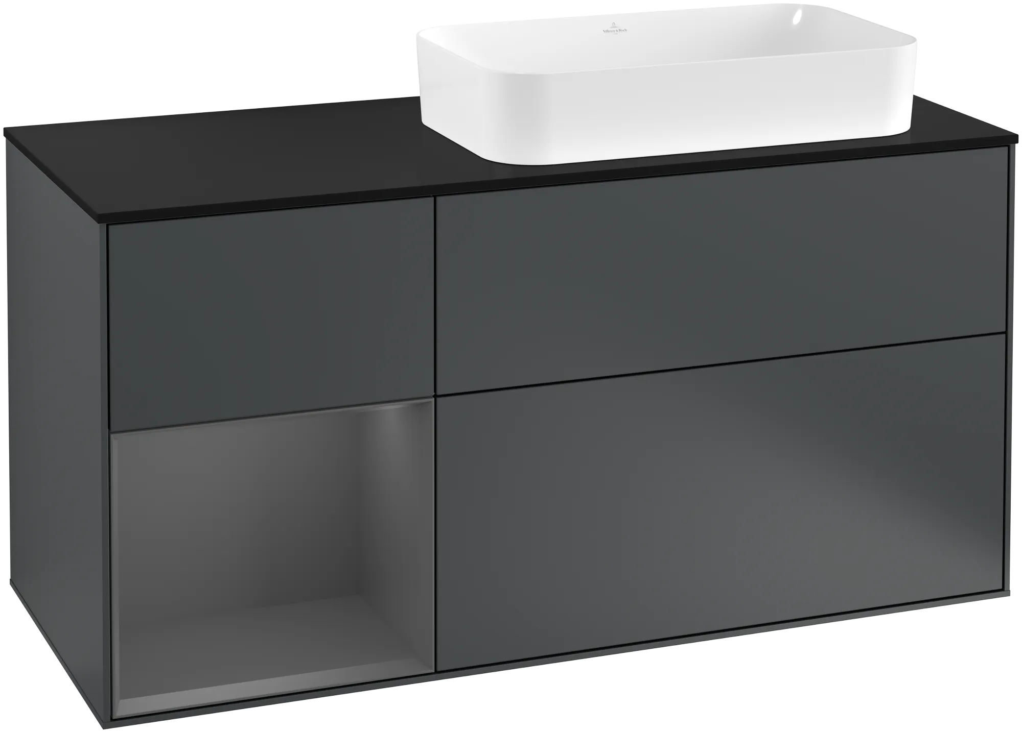 Villeroy & Boch Finion, Waschbeckenunterschrank, Holz, Maße: 1200 × 603 × 501 mm, Eckig, mit Regalelement (beleuchtet), mit Hahnlochbohrung, wandhängend, Waschbecken rechts, mit LED-Beleuchtung, IP 44, im Lieferumfang: 1 × Waschbeckenunterschrank, 1 × Befestigungssatz, Kombinierbar mit: Finion 4143 61, Definierte Waschbecken bitte separat bestellen, Zur Steuerung der Beleuchtung wird die Fernbedienung G999 02 00 benötigt . Diese ist nicht im Lieferumfang der Produkte enthalten. Es wird nur eine Steuereinheit pro Badezimmer benötigt, Dem Stornierungs- oder Änderungswunsch kann nicht in jedem Fall entsprochen werden, 1 × LED / 2,3 W, 2700 K (warmweiß) bis 6480 K (tageslichtweiß), GF Glossy White Lacquer, GF Glossy White Lacquer, 2_finion Glass Black MattSerie / Kollektion: Finionfür SchrankwaschtischModell: F27Material: HolzTyp: WaschtischunterschrankAußenform: RechteckHahnlochbohrung: mit Hahnlochbohrung Montage: Wand Becken: rechts Regalelement: links Beleuchtung: mit Regalelement-Beleuchtung Schubladen: 3 Abmessungen:Breite: 1200 mmHöhe: 603 mmTiefe: 501 mmNicht im LieferumfangWaschtisch bitte separat bestellen, ist nicht mit im Lieferumfang enthalten.