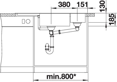 - Ergonomische Anordnung von Becken, Zusatzbecken und Abtropffläche