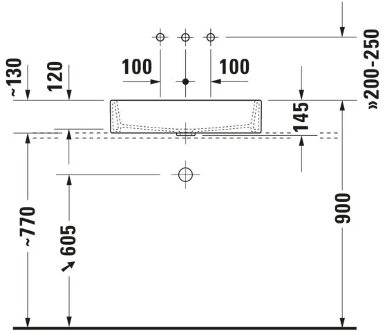 - Unterseite geschliffen, daher für die Montage auf Konsolen oder Waschtischunterschränken mit Konsole geeignet