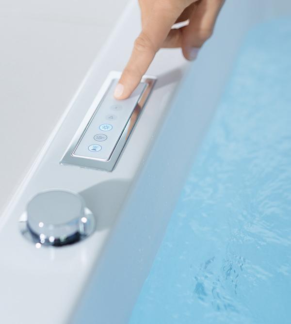 Die Düsen des Jet-Systems sind in die Seitenwände eingelassen und drücken ein Wasser-Luft-Gemisch in die Badewanne. Waden, Oberschenkel und Rücken werden auf Knopfdruck entweder sanft oder kraftvoll wohltuend massiert. Das Sprudeln stimuliert das Gewebe unter der Haut, Muskelschmerzen und Verspannungen lösen sich und die Durchblutung wird im ganzen Körper angeregt. Das Jet-System kann individuell um die Zusatzmodule LED-Farblicht erweitert werden.