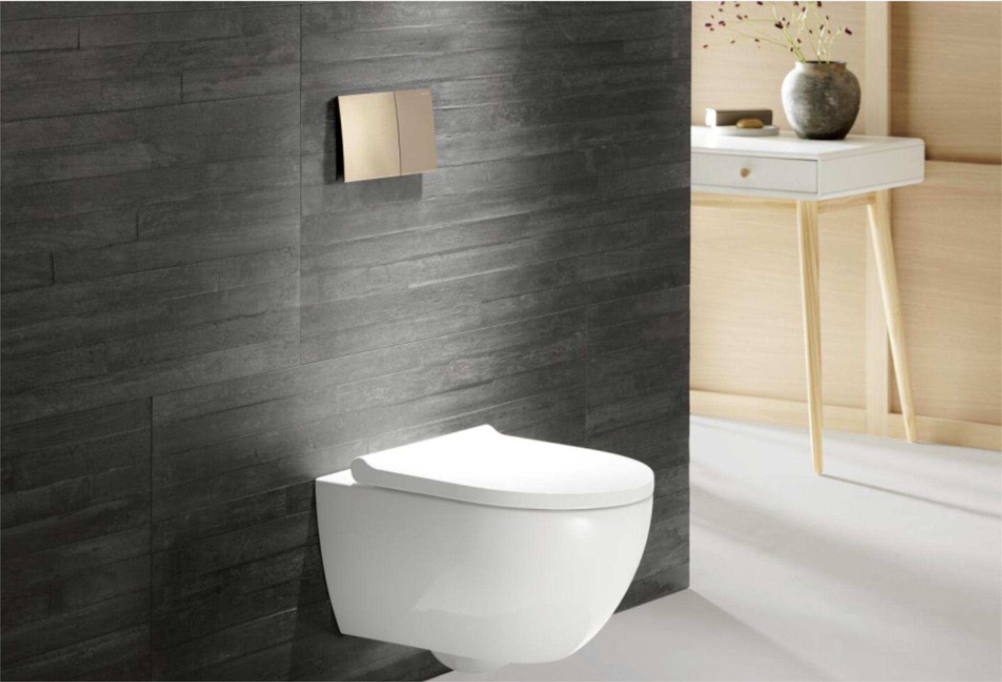 Von außen betrachtet fallen am Geberit Acanto Wand-WC die bekannte Form und der neue schlanke WC-Sitz ins Auge. Äußerlich weniger auffällig ist die nochmals hydraulisch optimierte Geometrie von TurboFlush im Inneren der Keramik. Diese leitet das Spülwasser wie einen kraftvollen Strudel durch die Keramik. Bei der Entwicklung des neuen TurboFlush wurde die Wasserführung genau auf die Geberit Unterputzspülkästen abgestimmt. Das macht das System hoch effizient.