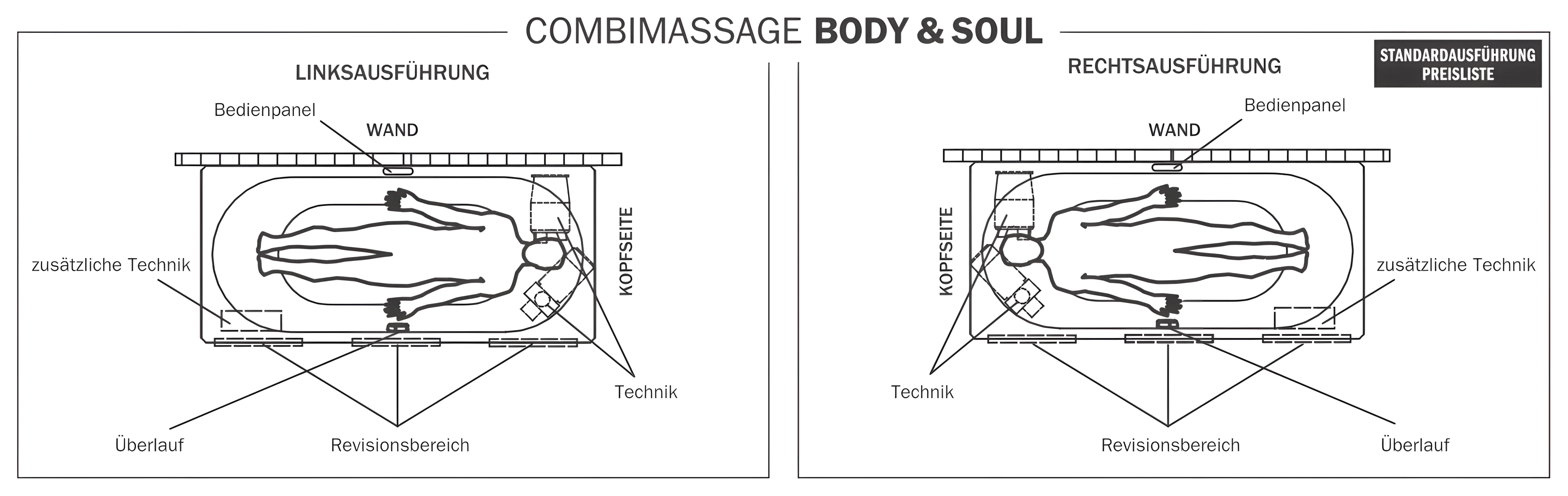 - Seitendüsen und Microjets für Rücken und Füße