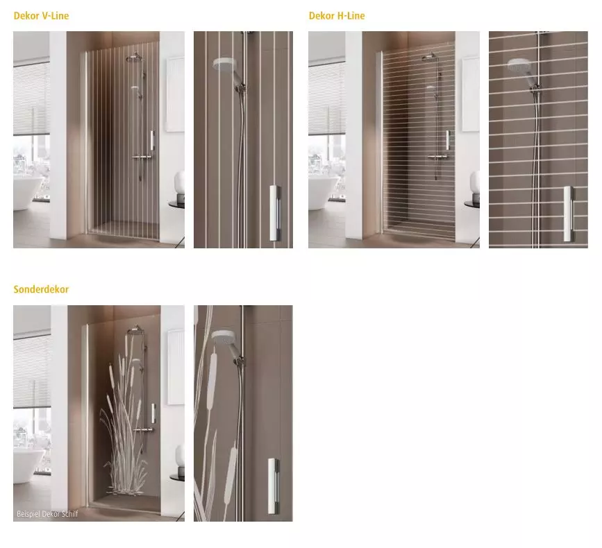 Unsere Duschgläser sind in verschiedenen Designvarianten erhältlich und bieten für jeden Geschmack die passende Optik.