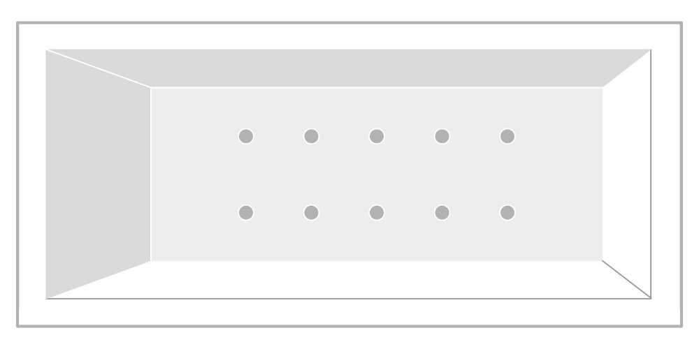 Da die Düsen im Boden sitzen, bleibt der Innenraum der Badewanne komfortabel: Es gibt keine störenden Einbauten an der Wand, sodass bequemes Sitzen und Liegen erhalten bleibt.