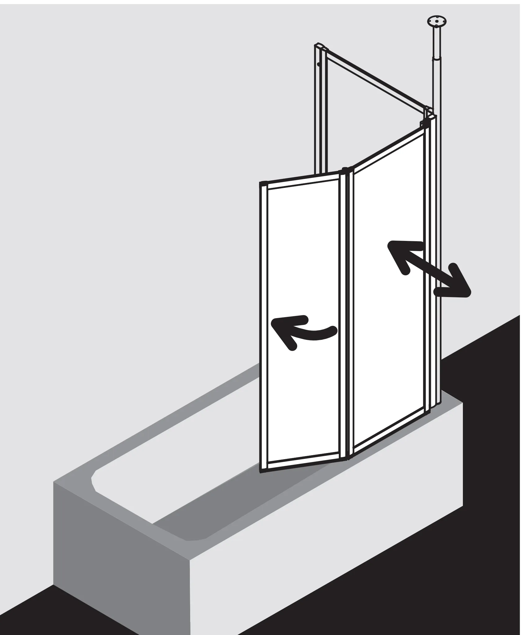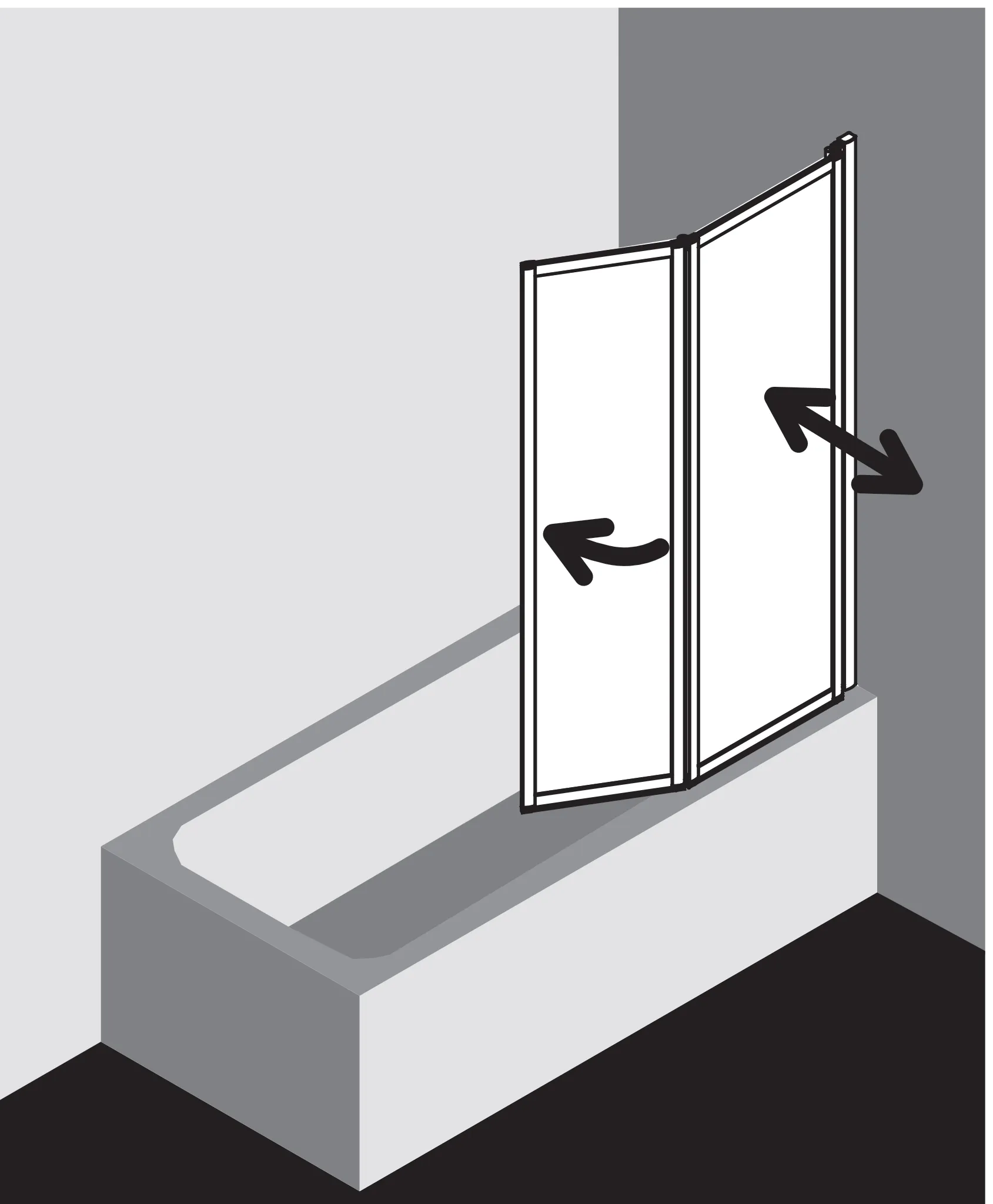 - Gerahmte Faltwand mit zwei Flügeln, im Wandprofil 90° nach innen und außen schwenkbar, 2. Flügel 180° nach innen