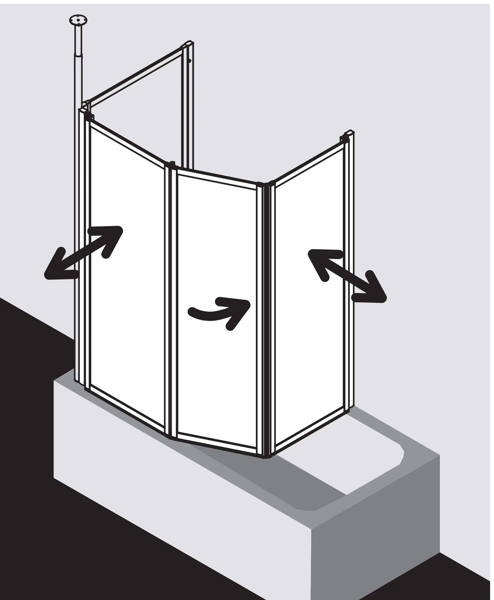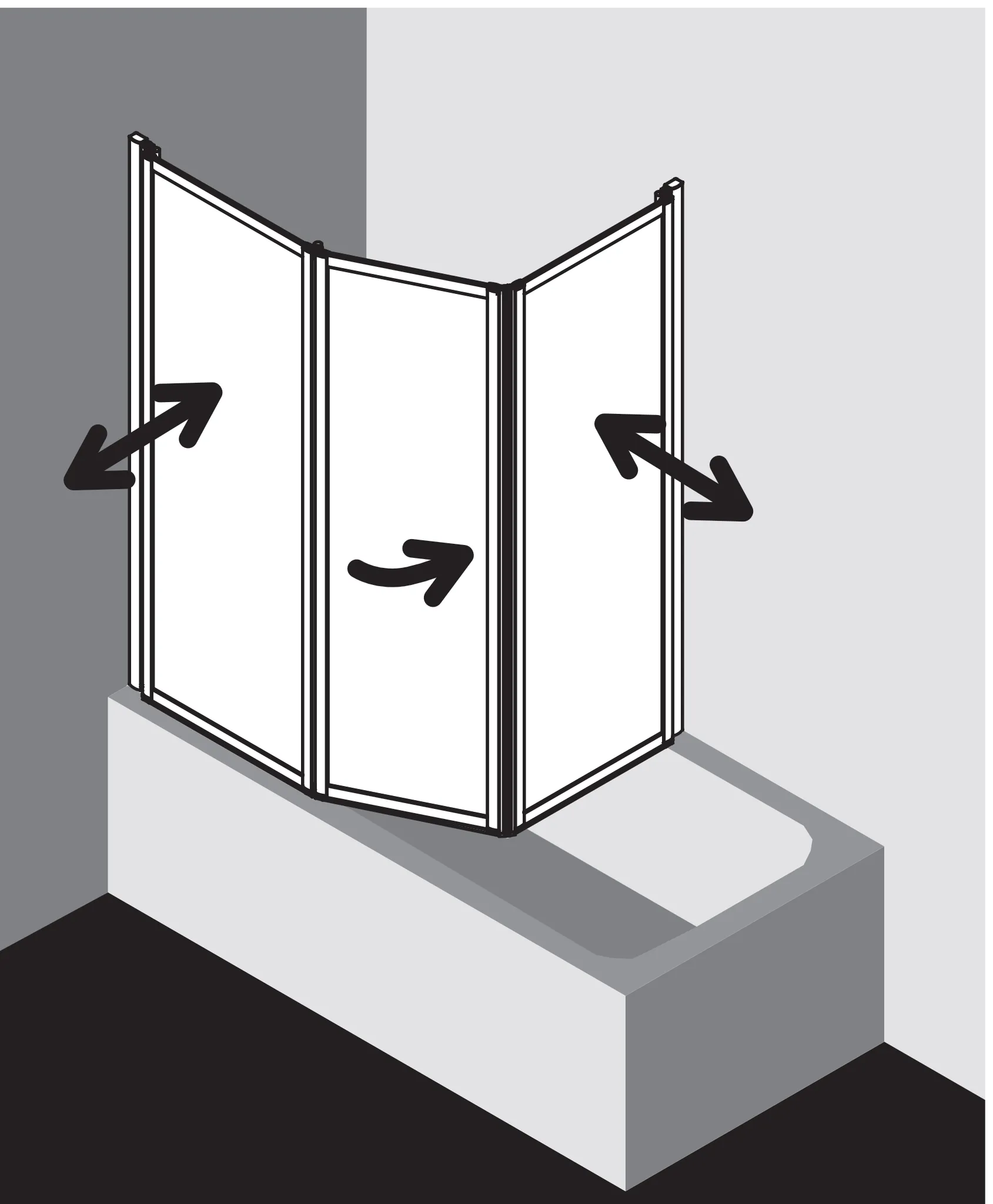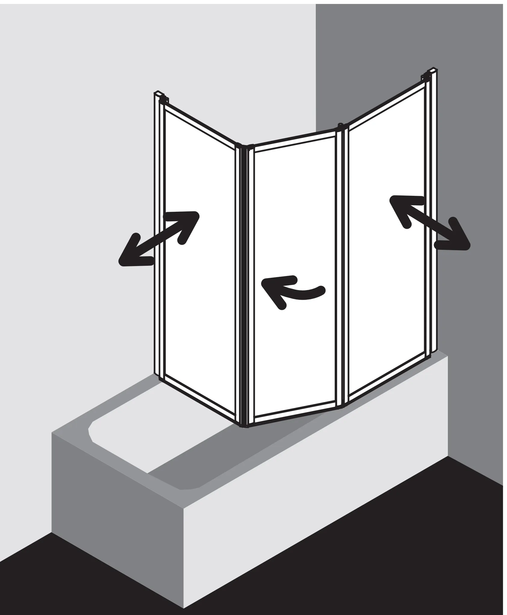 - Bestehend aus Faltwand 2-flügelig auf Badewanne und Faltwand 1-flügelig über Badewanne mit Magnetverschluss.