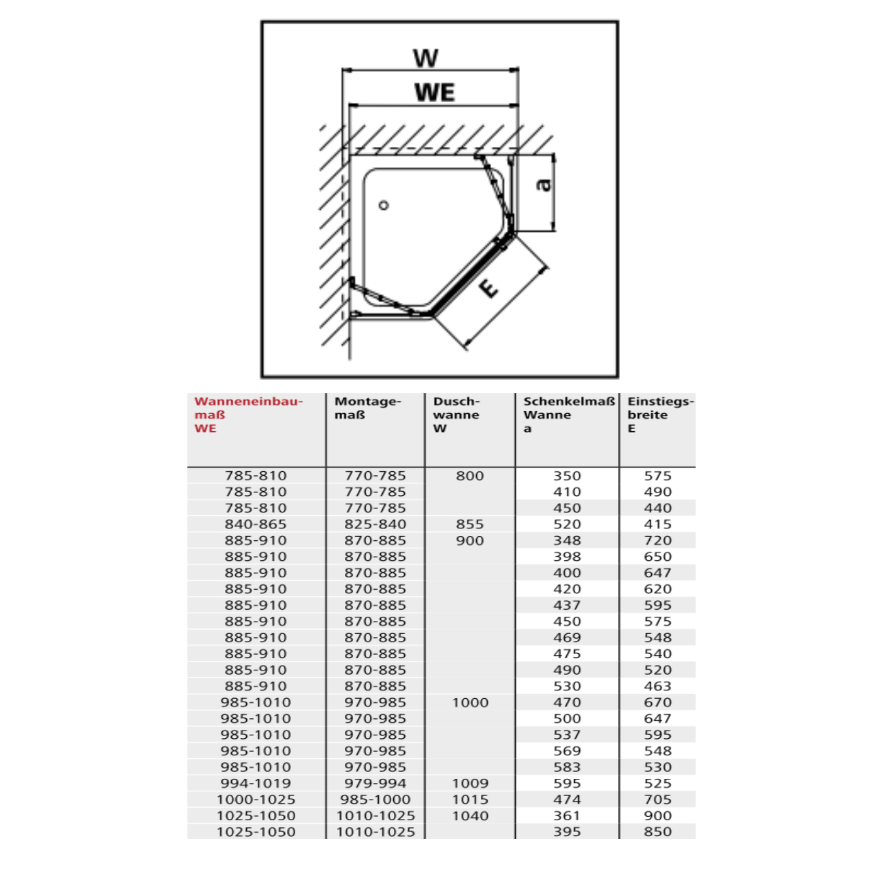 - Wanneneinbaumaß: 785 - 810 mm