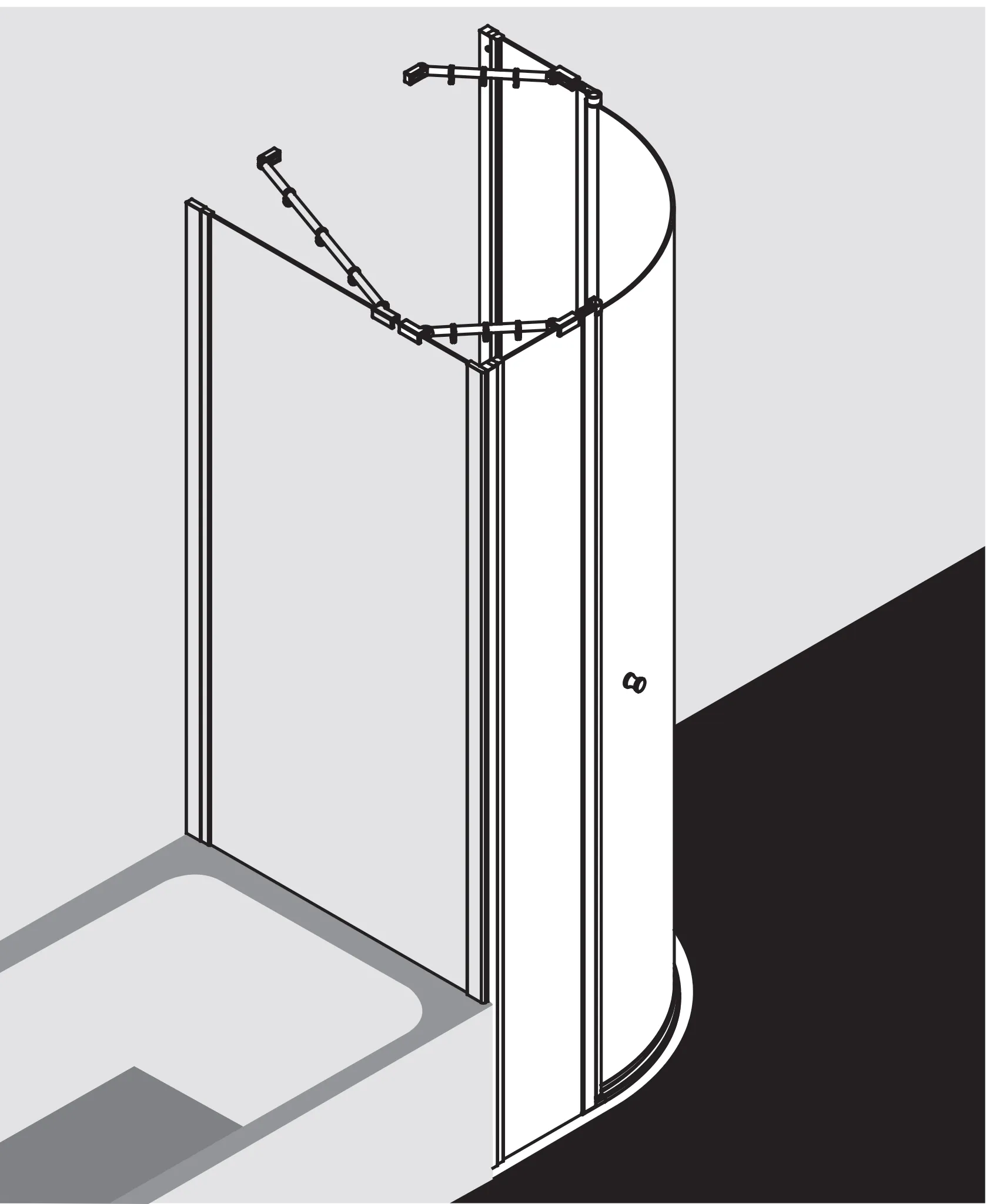 - Viertelkreis-Duschkabine mit Schwingtür und Festfeldern