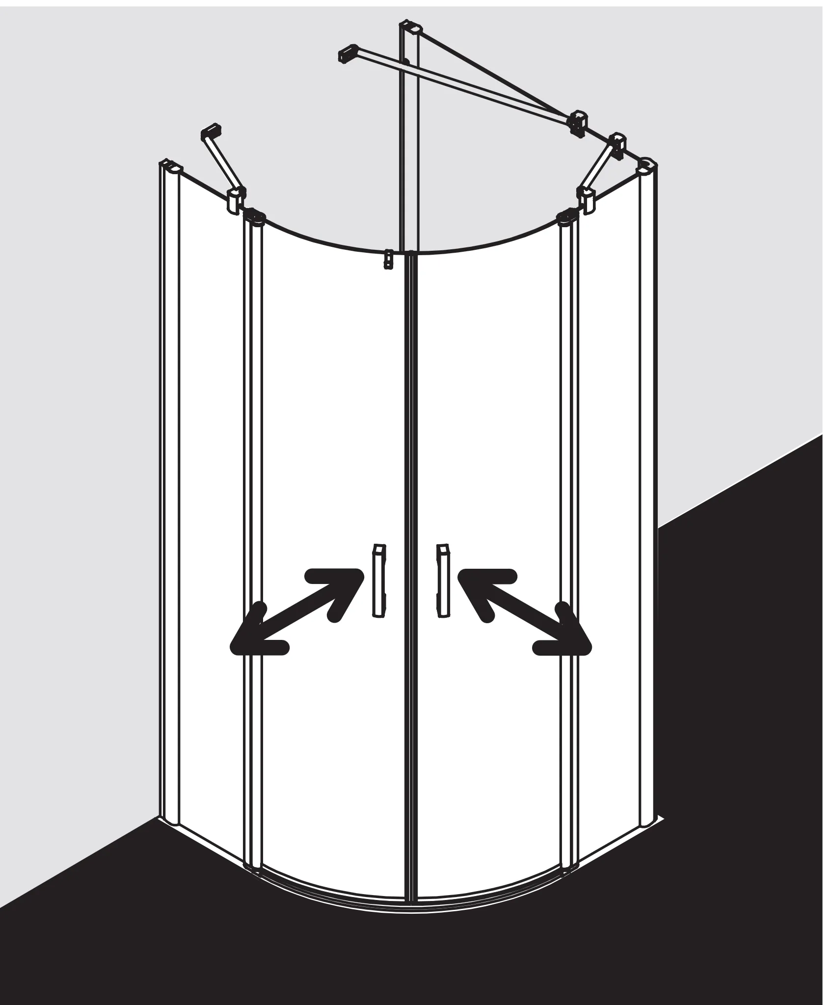 Kermi PEGA Viertelkreis-Duschkabine (Pendeltüren mit Festfeldern)