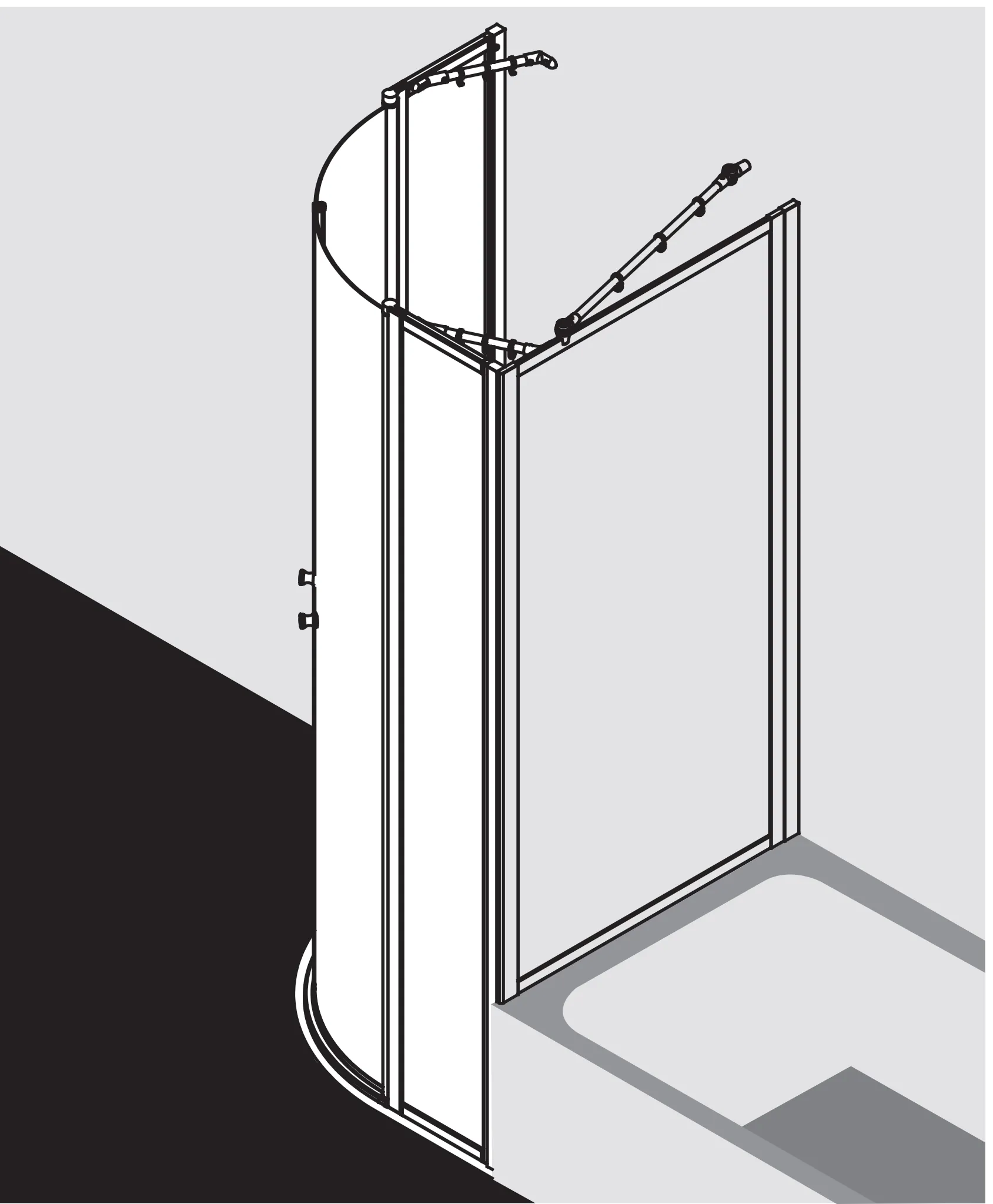 Produktinformationen "Kermi Duschdesign Viertelkreis-Duschkabine mit Pendeltüren mit Festfeldern für gleichschenklige Wannen „NOVA 2000“ Profile Silber Mattglanz, BV: 975 - 1000 mm WE: 985 - 1010 mm H: 1850 mm"