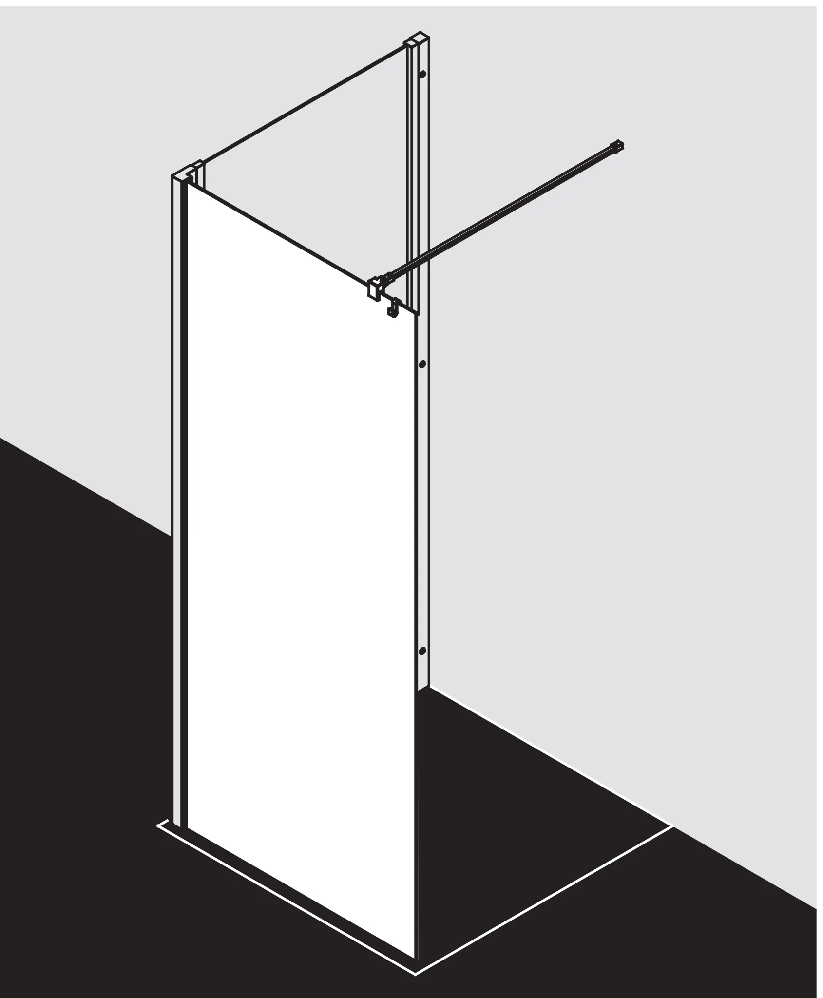 - Teilgerahmte WALK-IN-Glasanlage mit Wandbefestigung. Mit 90 Grad Liga-Stabilisierung ZDSS S90 LI120.K. Die verwendete Stabilisierung erhöht das Produkt um 24 mm.
