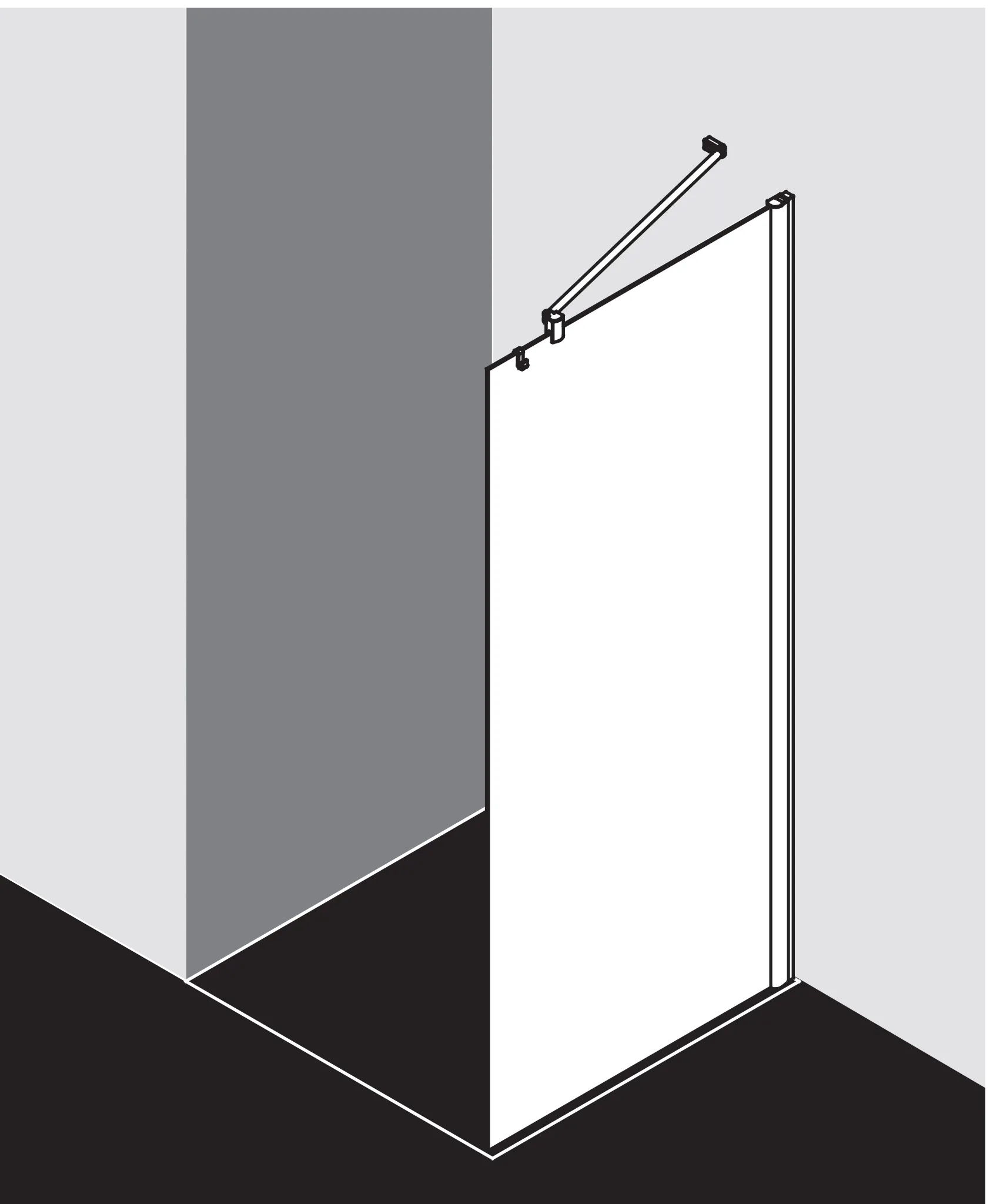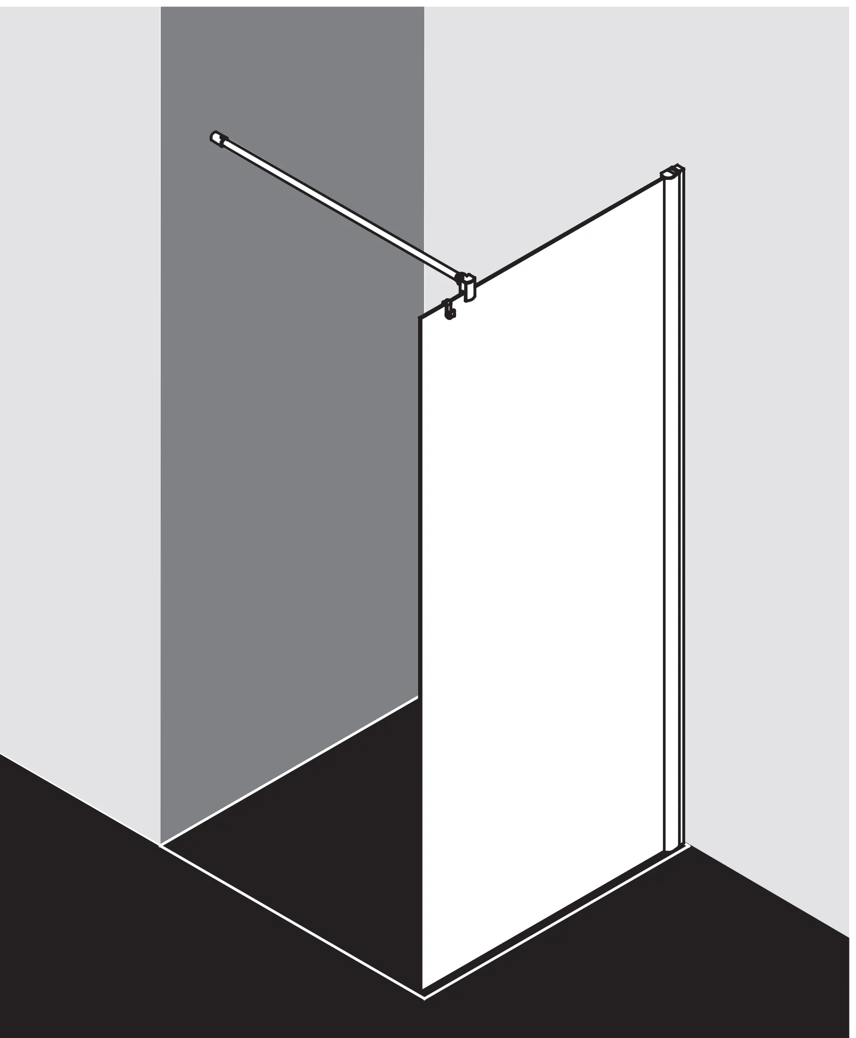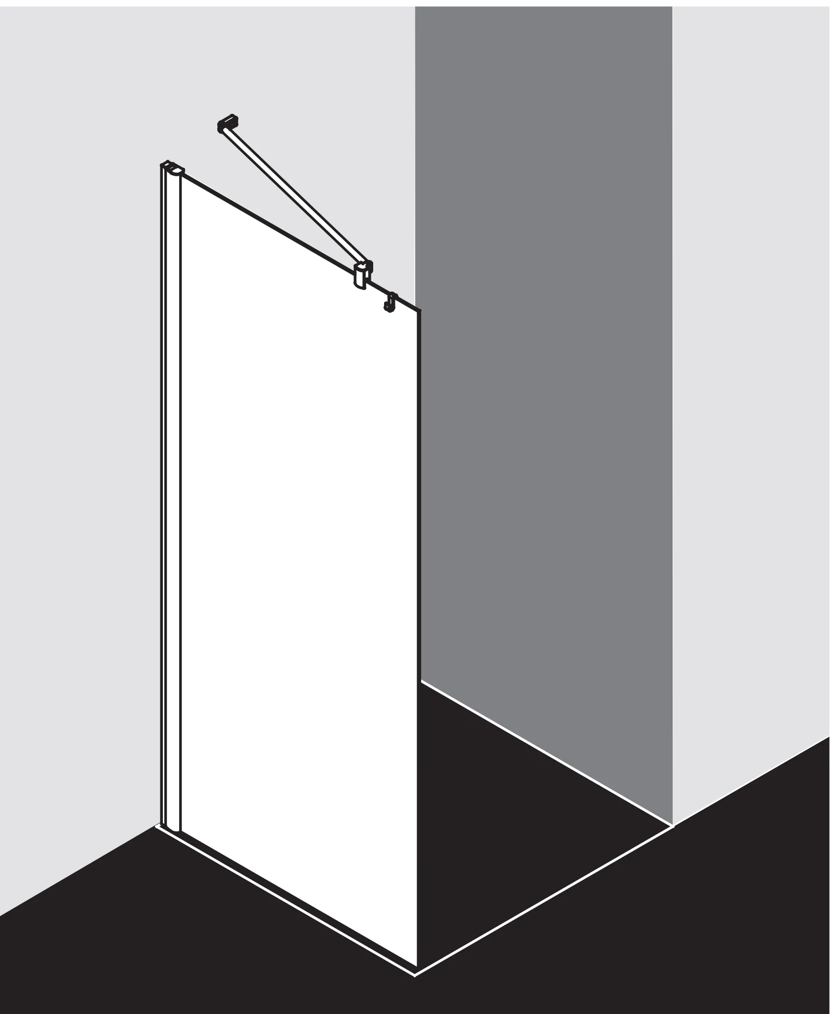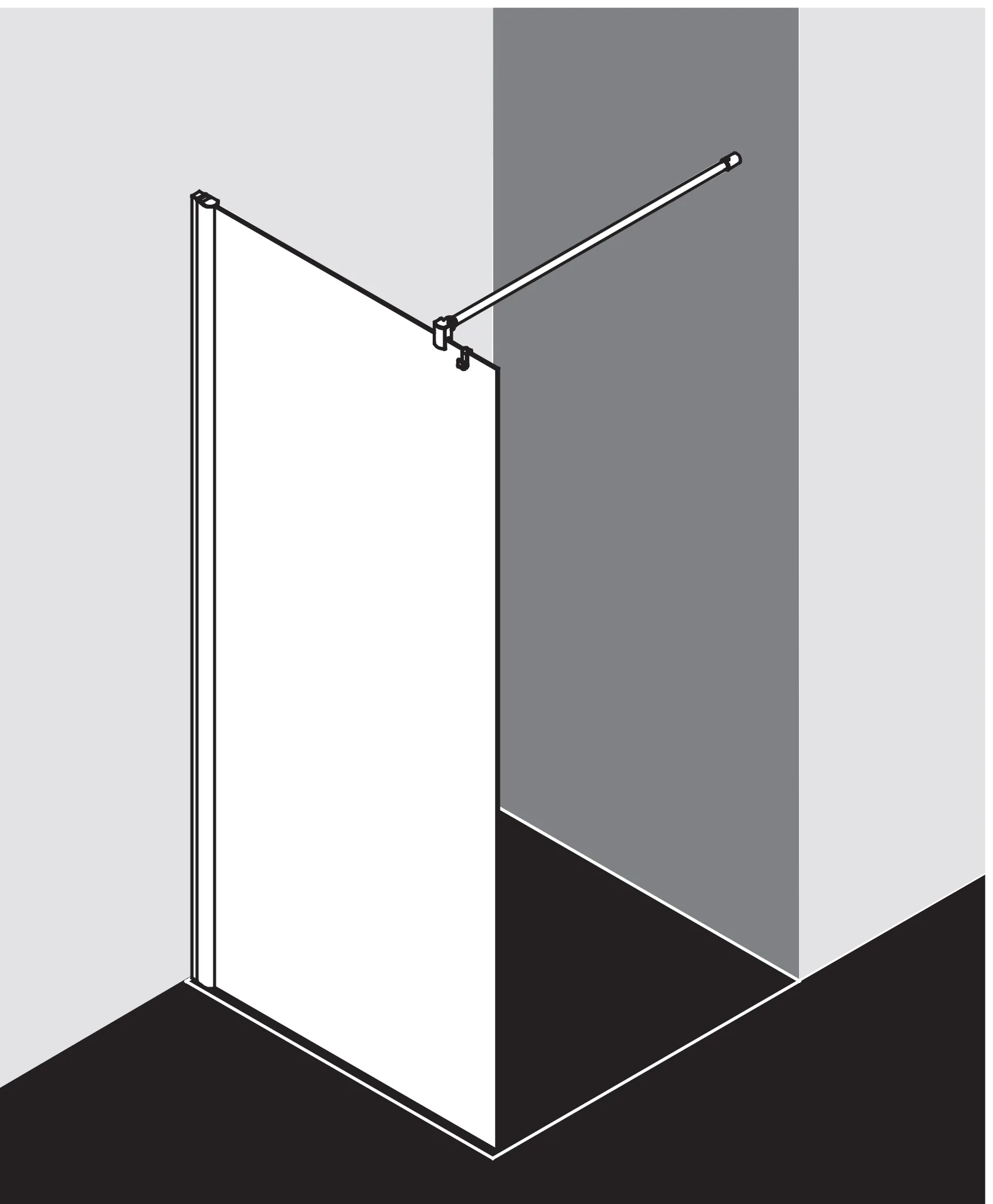 - Teilgerahmte WALK-IN-Glasanlage mit Wandbefestigung.