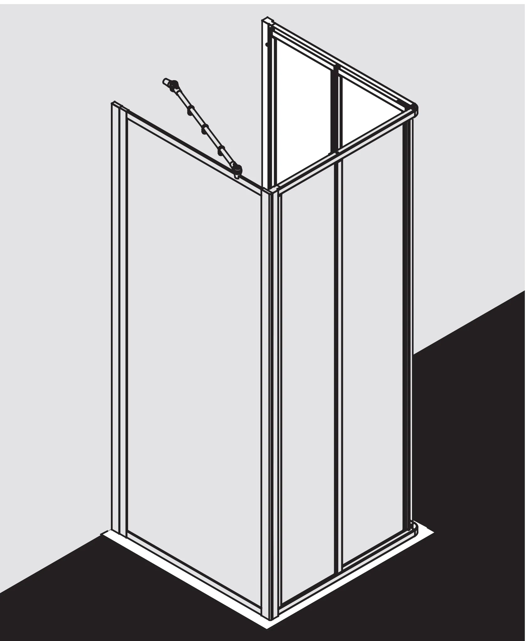 - Gerahmtes Eckeinstiegshalbteil mit zwei Falttürsegmenten, nach einer Seite nach innen öffnend.