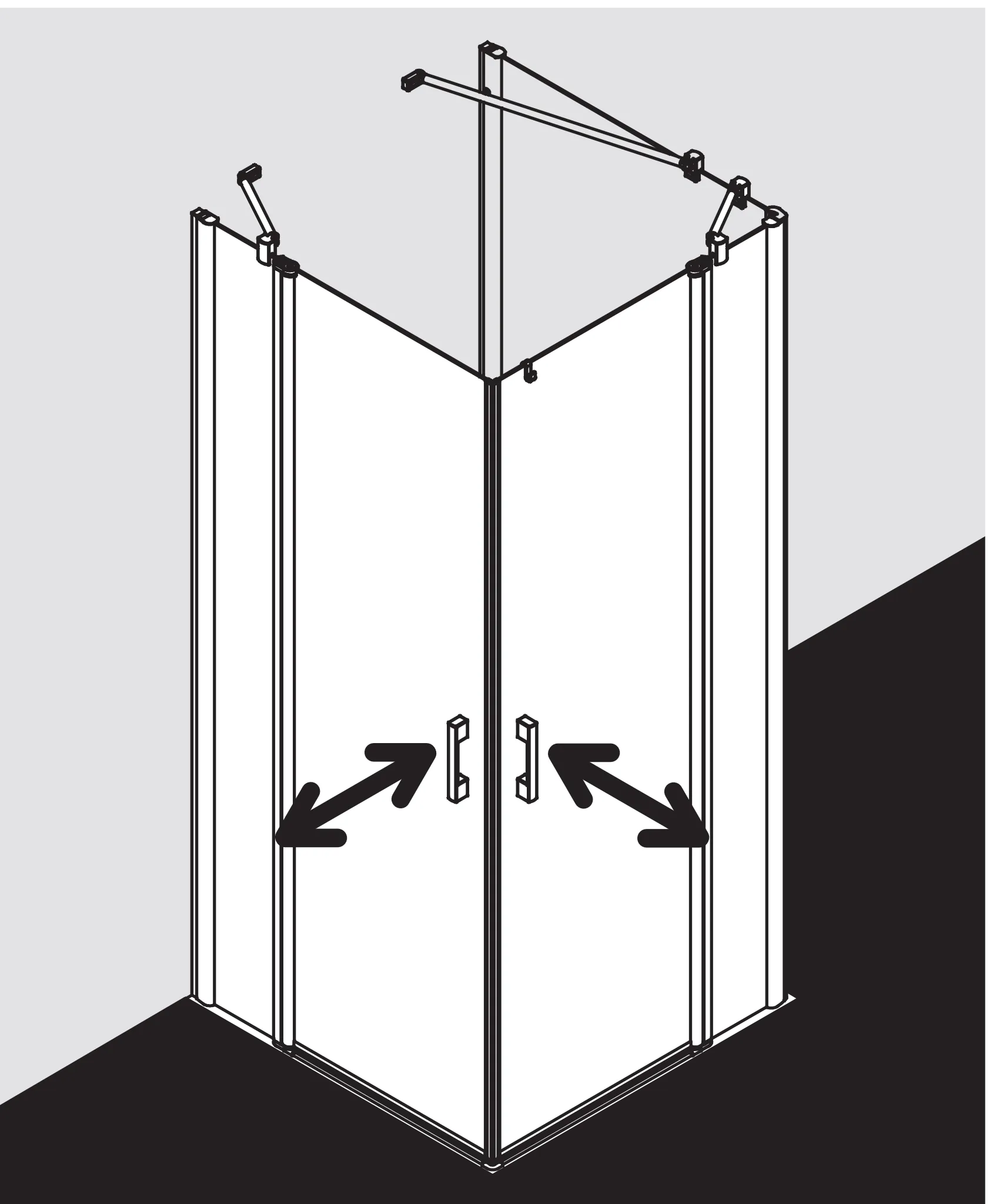 Kermi PEGA Eckeinstieg 2-teilig (Pendeltüren mit Festfeldern) - Halbteil