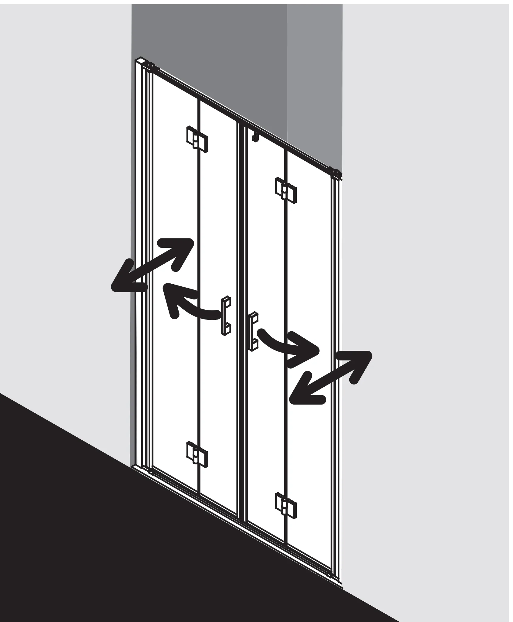 Die genaue Breitenverstellmöglichkeit (BV) Maßanfertigung finden Sie in der jeweiligen Tabelle Maßanfertigung. Der Breitenverstellbereich der Maßanfertigung ermöglicht den Schrägenausgleich bei nicht exakt lotgerechten Wänden.