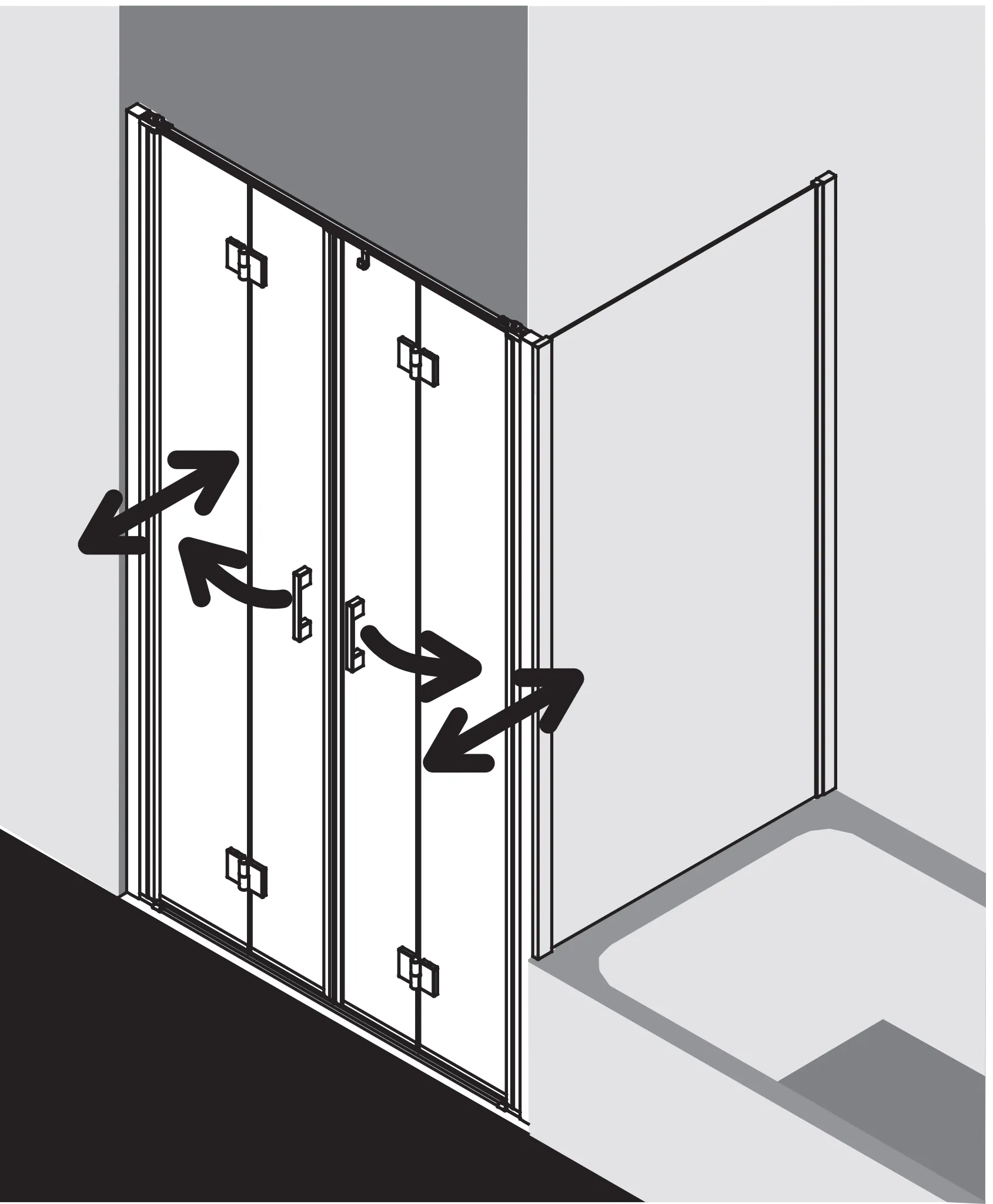 Wanneneinbaumaß 1190-1240 / 1200-1250 mm, Breitenverstellmaß 1190-1240 mm, Glasaußenkante 1180-1230 mm