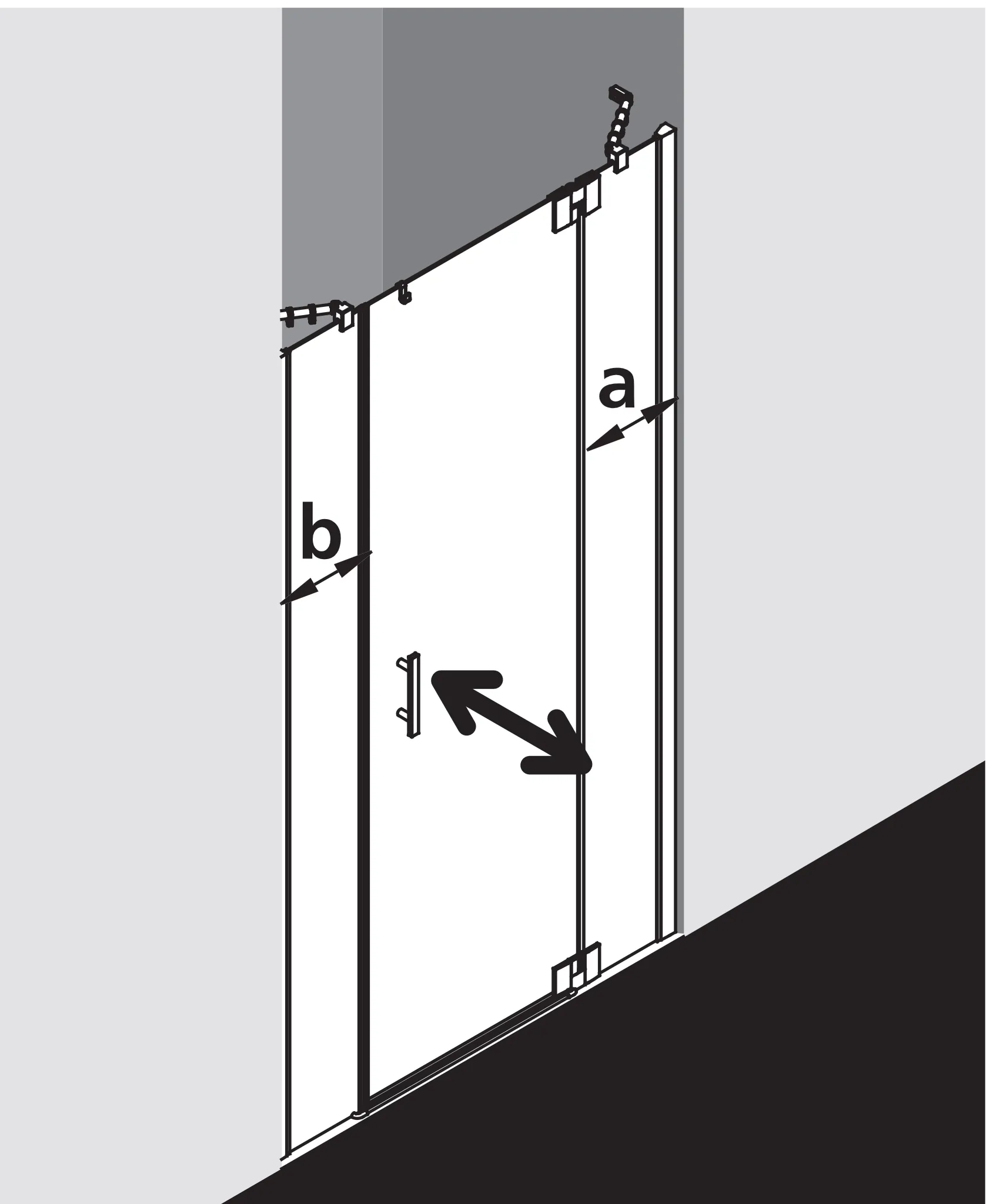 Die genaue Breitenverstellmöglichkeit (BV) Maßanfertigung finden Sie in der jeweiligen Tabelle Maßanfertigung. Der Breitenverstellbereich der Maßanfertigung ermöglicht den Schrägenausgleich bei nicht exakt lotgerechten Wänden.