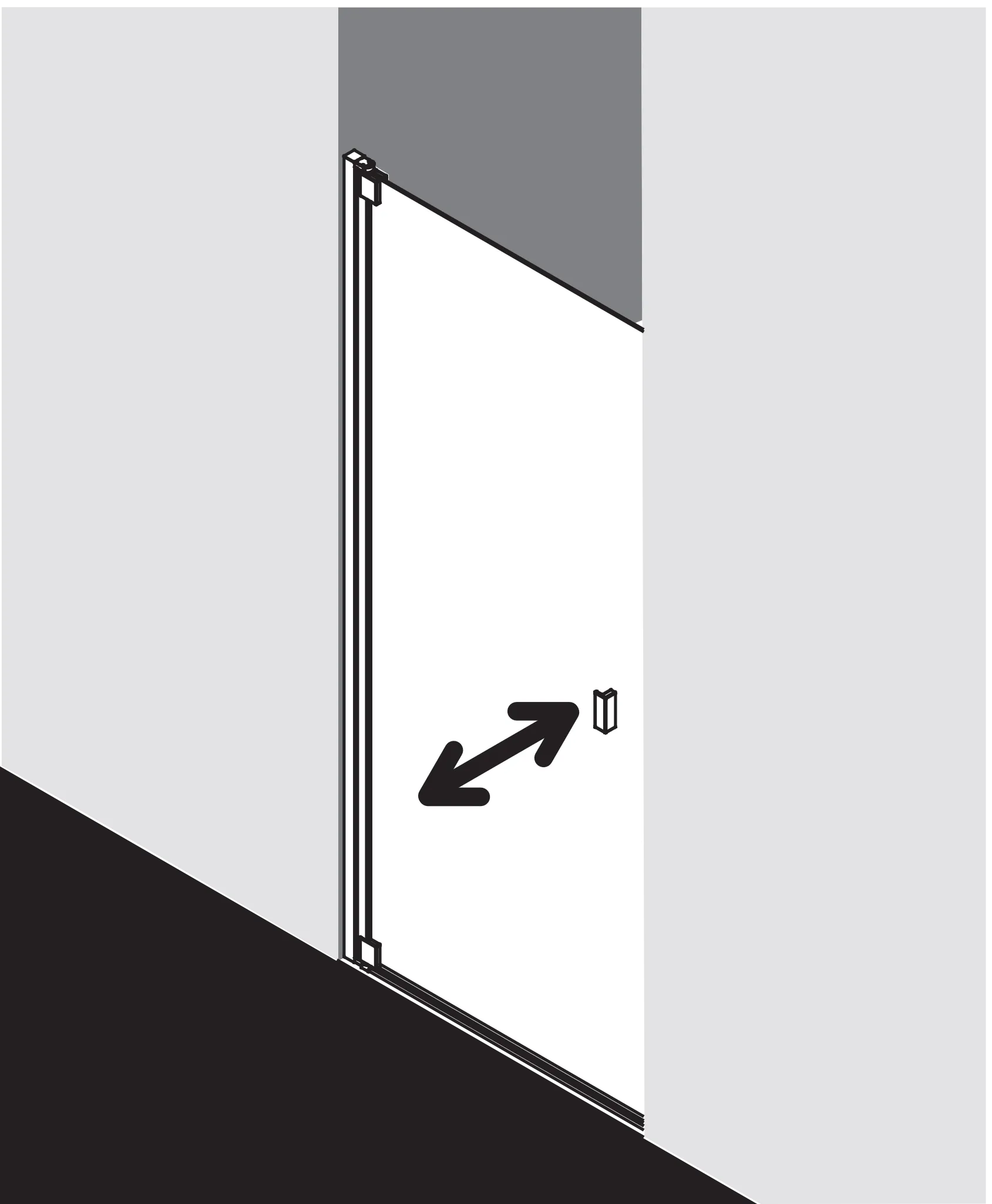Die genaue Breitenverstellmöglichkeit (BV) Maßanfertigung finden Sie in der jeweiligen Tabelle Maßanfertigung. Der Breitenverstellbereich der Maßanfertigung ermöglicht den Schrägenausgleich bei nicht exakt lotgerechten Wänden.