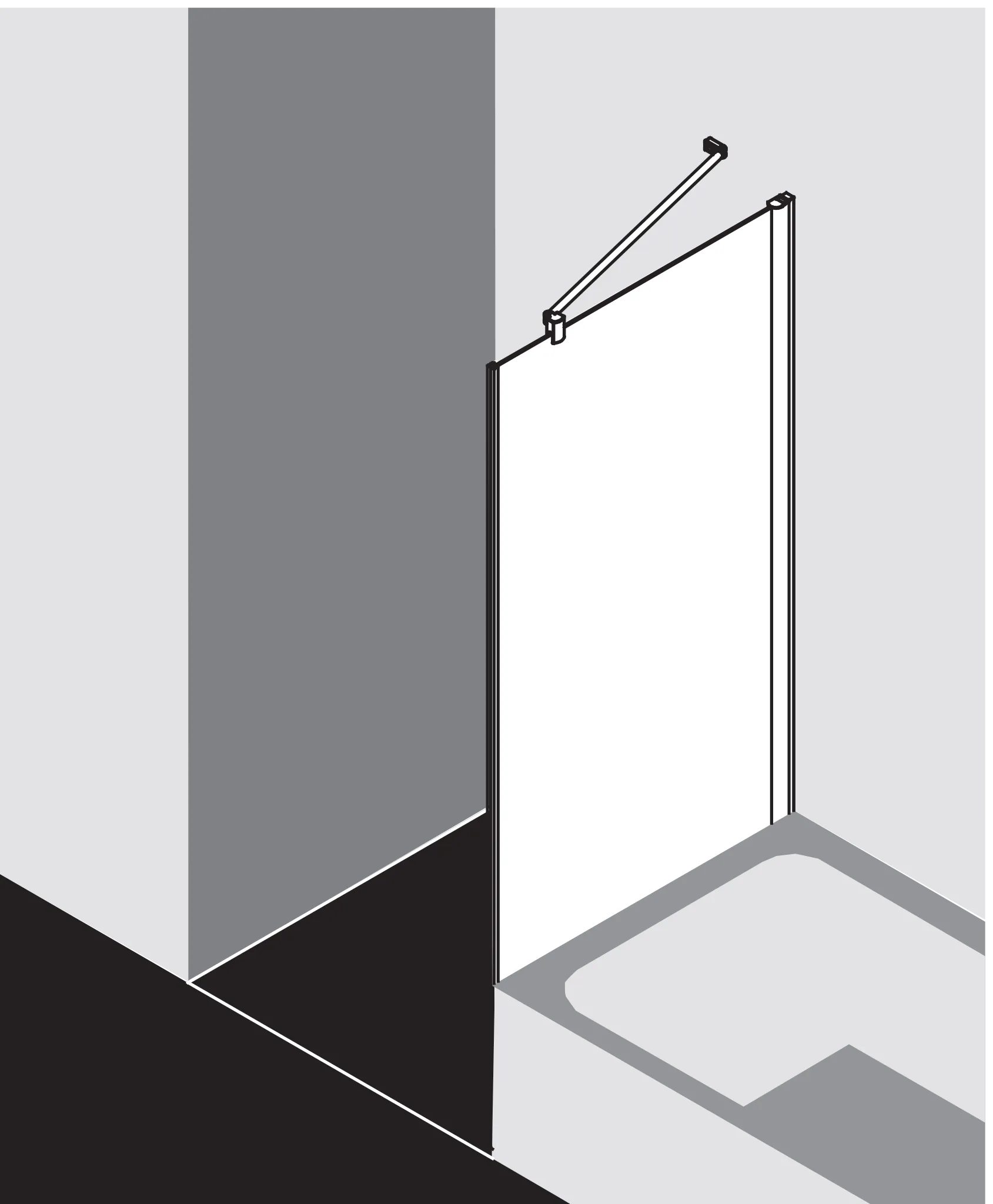 - Zur Kombination mit PE 1KR/L Pendeltür 1-flügelig / PE 1NR/L Pendeltür 1-flügelig mit Festfeld. Teilgerahmte verkürzte Seitenwand neben Badewanne.