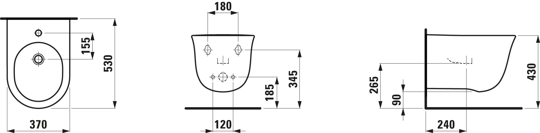 Wandbidet The New Classic 370x530, 1-HL, weiß Artikel: Wandbidet Material: Sanitärkeramik Farbe: 000 weiß Ausführung: 1 Hahnloch mittig mit Überlauf Eckventile innenliegend Ohne seitliches Loch Norm: EN 35 Maße (mm) Breite: 370 Tiefe: 530 Höhe: 340 Gewicht (kg): 17,0 Hersteller: LAUFEN Serie: The New Classic Artikelnummer: H8308510003021