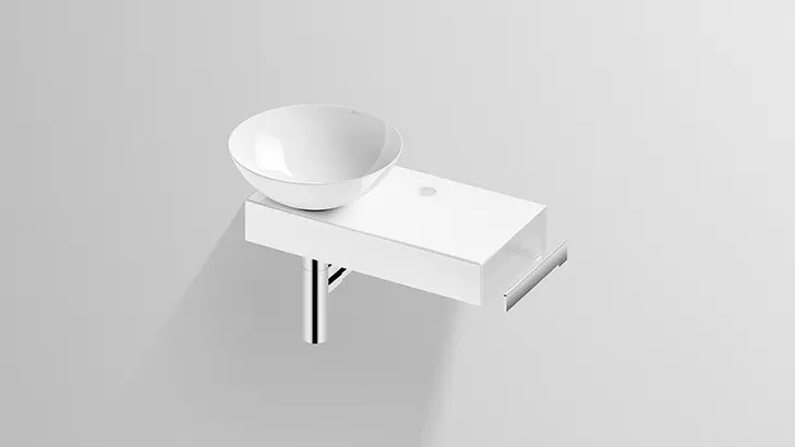 Alape Waschplatz „PN-Serie“ 320 × 400 mm in Alpinweiß, links