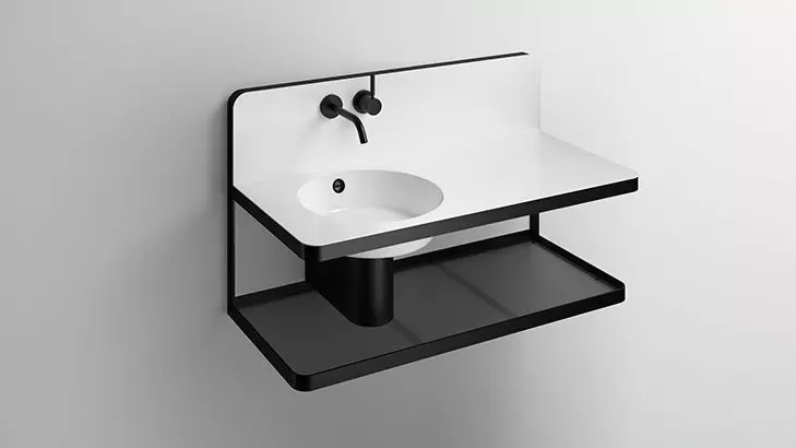 Waschplatz, für Renovation, wandhängend,rechteckig, B/H/T 600/697/360 mm, Muldelinks, D 280 mm, Muldentiefe 105 mm,glasierter Stahl, weiß, ohne Überlauf,Konsole, Stahlgestell pulverbeschichtet,mattschwarz, inklusive Befestigungsset,Schaftventil, Ventilkappe, glasiert inBeckenfarbe, Siphon, Glasablage,Wandauslaufarmatur im Splashback,Druckschläuche 600 mmSerie / Kollektion: S19-SerieModell: 5266000000Material: Glasierter StahlTyp: WaschtischunterschrankMontage: Wand Becken: links Abmessungen:Länge: 360 mmBreite: 600 mmHöhe: 697 mm
