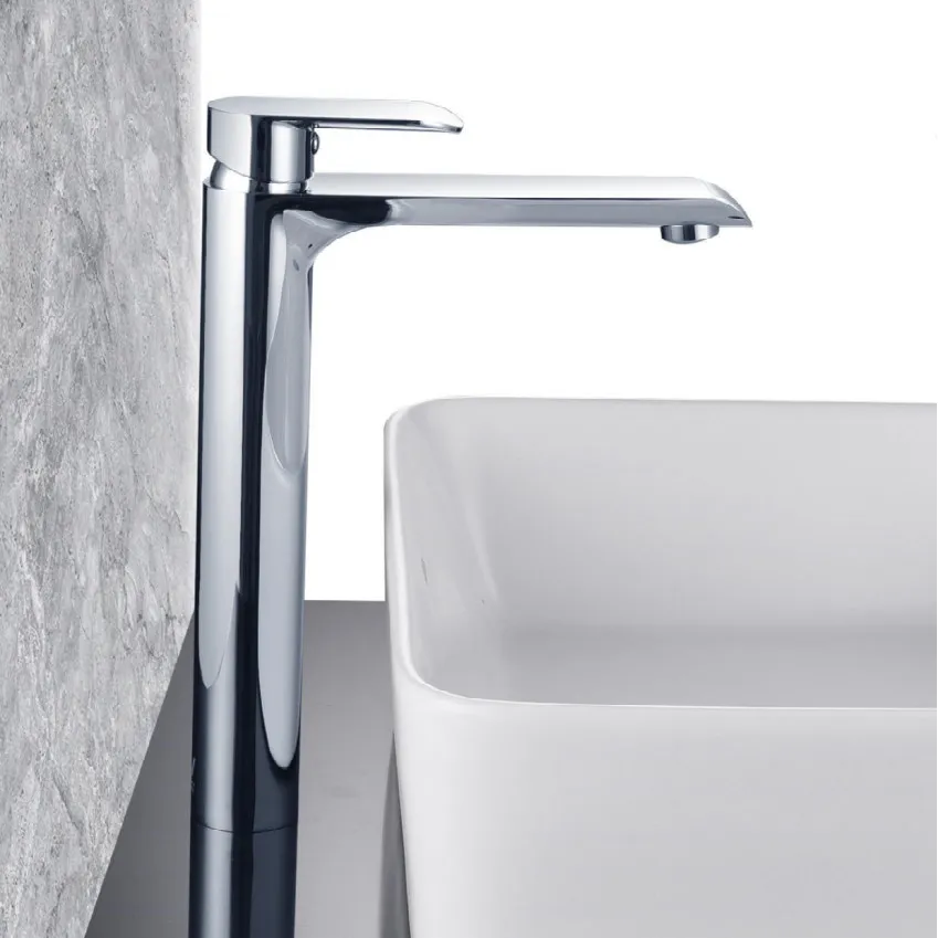 Waschtisch-Einhandbatterie AqvaBasic IV - erhöhter Standfuß - Klick-Klack-Ablaufgarnitur 1"1/4 - Kartusche mit keramischen Dichtscheiben - Heißwassersperre - Wassermengendurchflussregulierung - flexible Druckschläuche 3/8", DVGW W270 - chrom