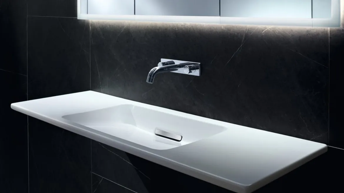 Schrankwaschtisch mit Ablagefläche „One“ mit horizontalem Ablauf 90 × 48 cm mit KeraTect®