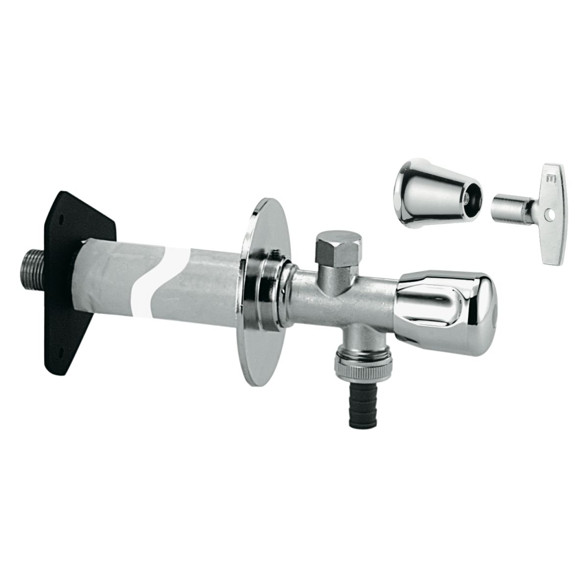 Außenwandventil-Bausatz Eurotec 41208, DN 15, Einbautiefe 170 - 500 mm, frostsicher, Steckschlüssel- und Sanitärgriff, Rückflussverhinderer Typ EB, eigensicher, chrom