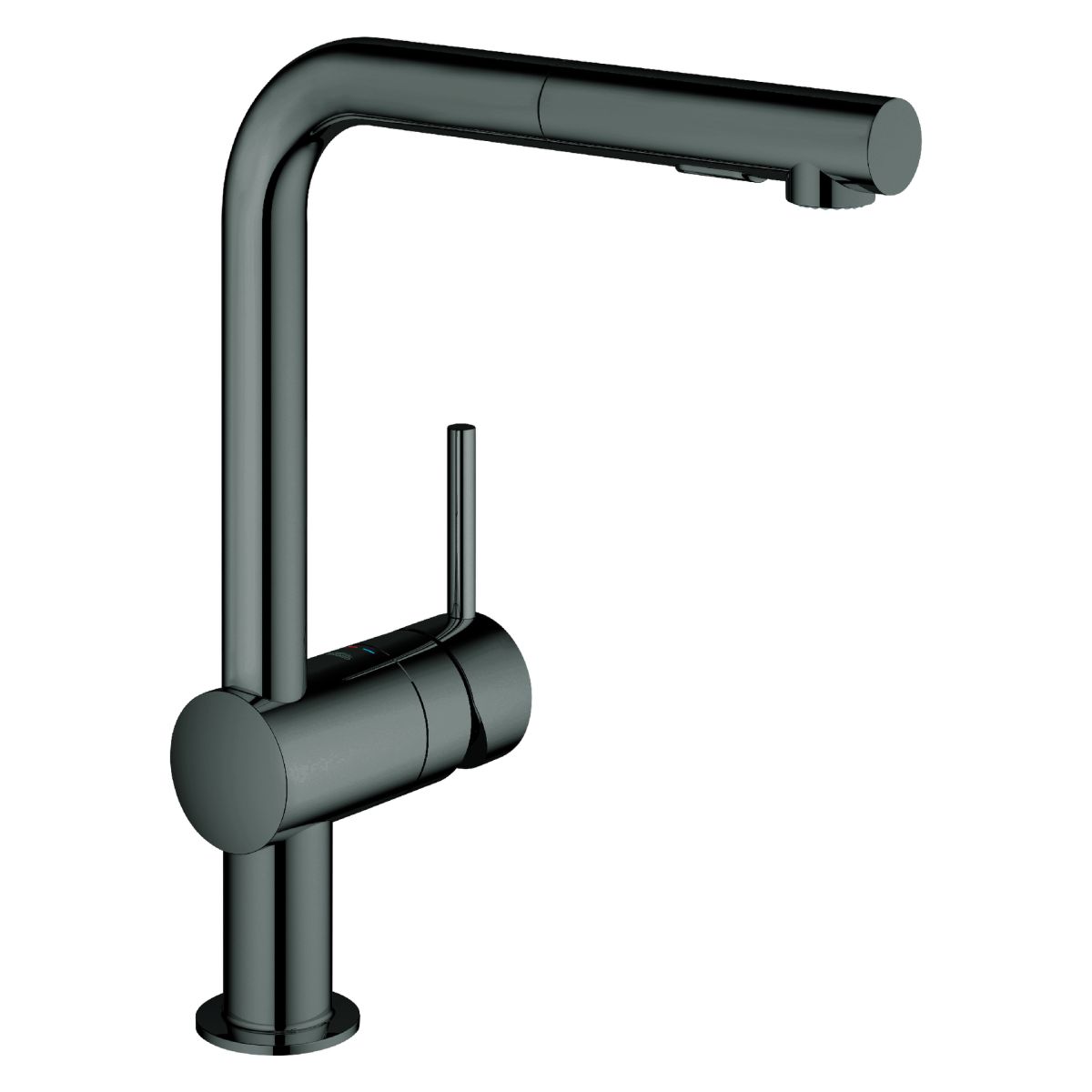 Grohe Minta Einhand-Spültischbatterie, L-Auslauf, Einlochmontage, herausziehbarer Mousseurauslauf, chrom