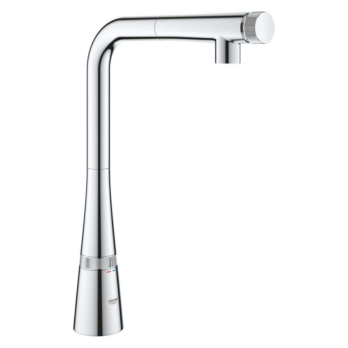 Spültischbatterie Zedra SmartControl 31593_2, Einlochmontage, An/Aus per Knopfdruck, Volumensteuerung durch Drehen, Temperatureinstellung durch Drehen des Mischventils am Armaturenkörper, getrennte innenliegende Wasserwege, chrom