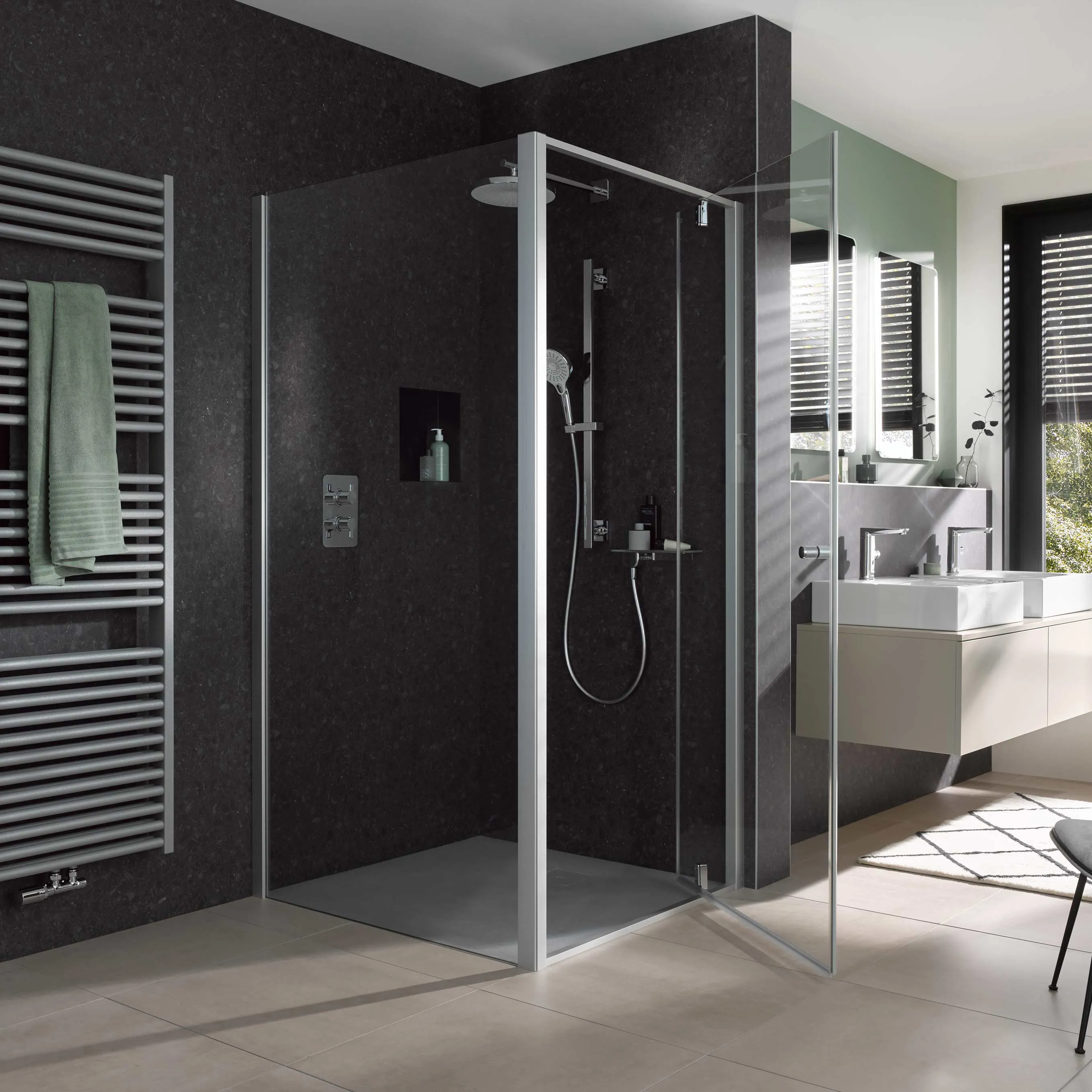 HSK gerahmte Drehpunkttür „Favorit Plus“ für Nische Glas Klar hell, Profile Alu Silber-matt, H: 2000 mm
