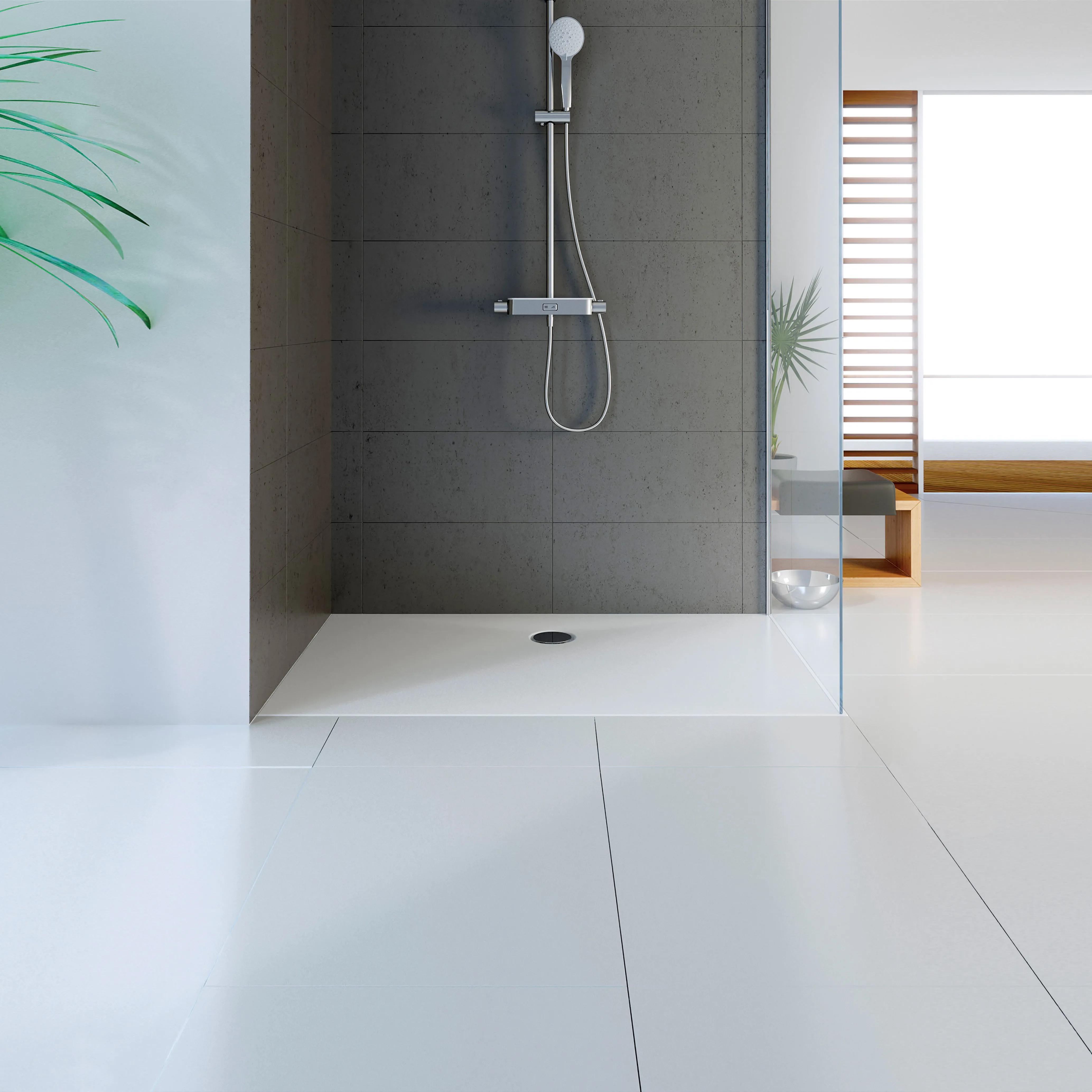 HSK rechteck Marmor-Polymer-Duschwanne mit Randablauf „superflach“ 80 × 100 cm in Weiß