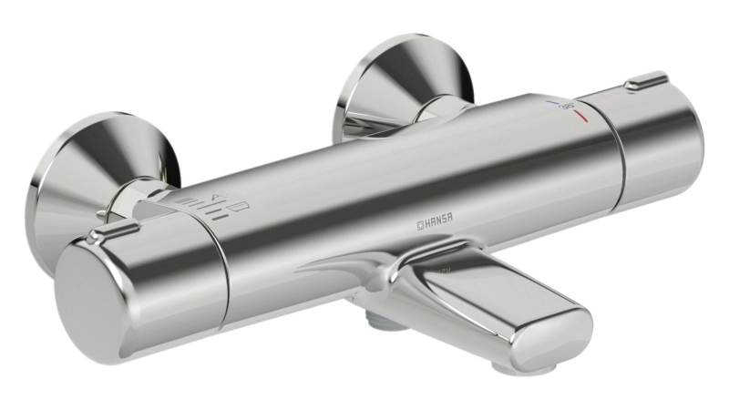 HansaMICRA Wannen- und Brausearmatur Hansamicra 2017 in Chrom. Thermostat, S-Anschlüsse, Temperatureinstellgriff, Durchflussein…