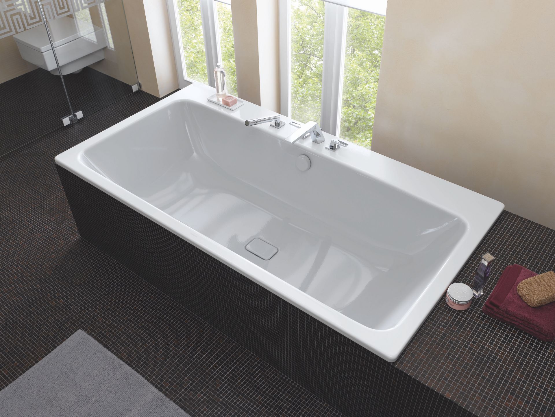 Die "Asymmetric Duo" Badewannenserie von Kaldewei eröffnet eine neue Dimension der Badezimmergestaltung. Durch die großzügige Ablagefläche bietet sie zusätzlichen Platz für Badutensilien. Auch die individuelle Positionierung von Armaturen wird hier ermöglicht, was die Anpassungsfähigkeit dieser Badewanne unterstreicht. Die klar definierte und präzise Form des Wannenrandes steht im reizvollen Kontrast zur ergonomisch geformten und fließenden Innenfläche. Dieses Designmerkmal stellt eine harmonische Verbindung zwischen Ästhetik und Funktionalität her und trägt zum unverwechselbaren Charakter der "Asymmetric Duo" Badewanne bei. Zwei identische Rückenschrägen und der Mittelablauf ermöglichen ein entspanntes Baden zu zweit. Ein weiteres hervorstechendes Merkmal ist der in den Wannenboden integrierte Ablauf, der eine elegante und harmonische Lösung darstellt. Diese Details tragen dazu bei, dass die "Asymmetric Duo" Badewanne eine Bereicherung für jedes Badezimmer ist und sowohl in Sachen Design als auch Komfort überzeugt. Mit der "Asymmetric Duo" Serie von Kaldewei wird jedes Bad zu einem individuellen und stilvollen Erlebnis.