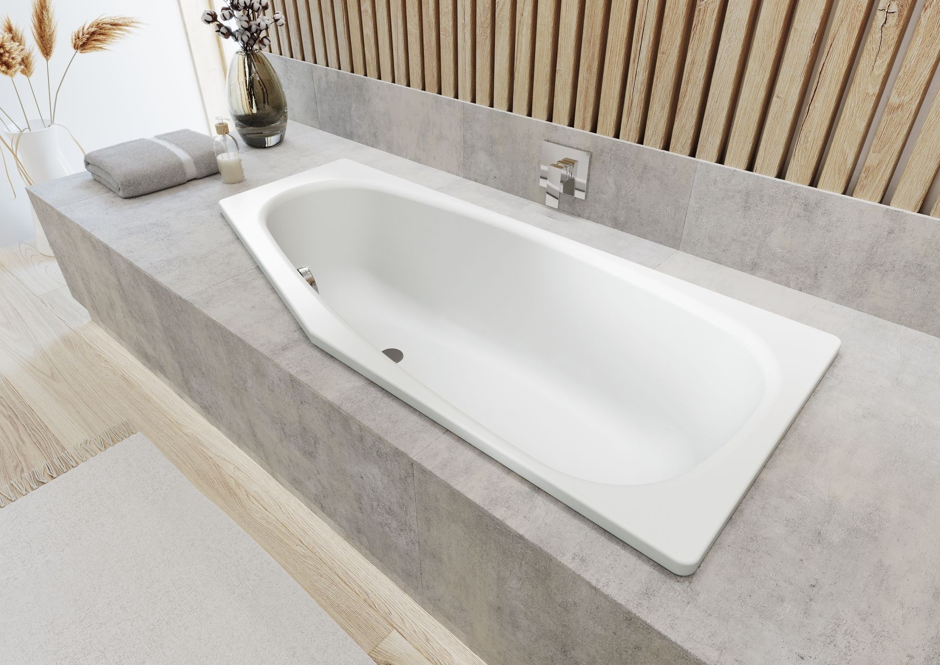 Die einzigartige Formgebung der "Mini" mit einem seitlich positionierten Überlauf bietet nicht nur ein visuell ansprechendes Design, sondern trägt auch zur effizienten Nutzung der Badewanne bei. Die Verjüngung der Innenform führt zu einem sparsameren Wasserverbrauch, ohne dass dabei auf den Komfort eines tiefen und entspannenden Bades verzichtet werden muss.