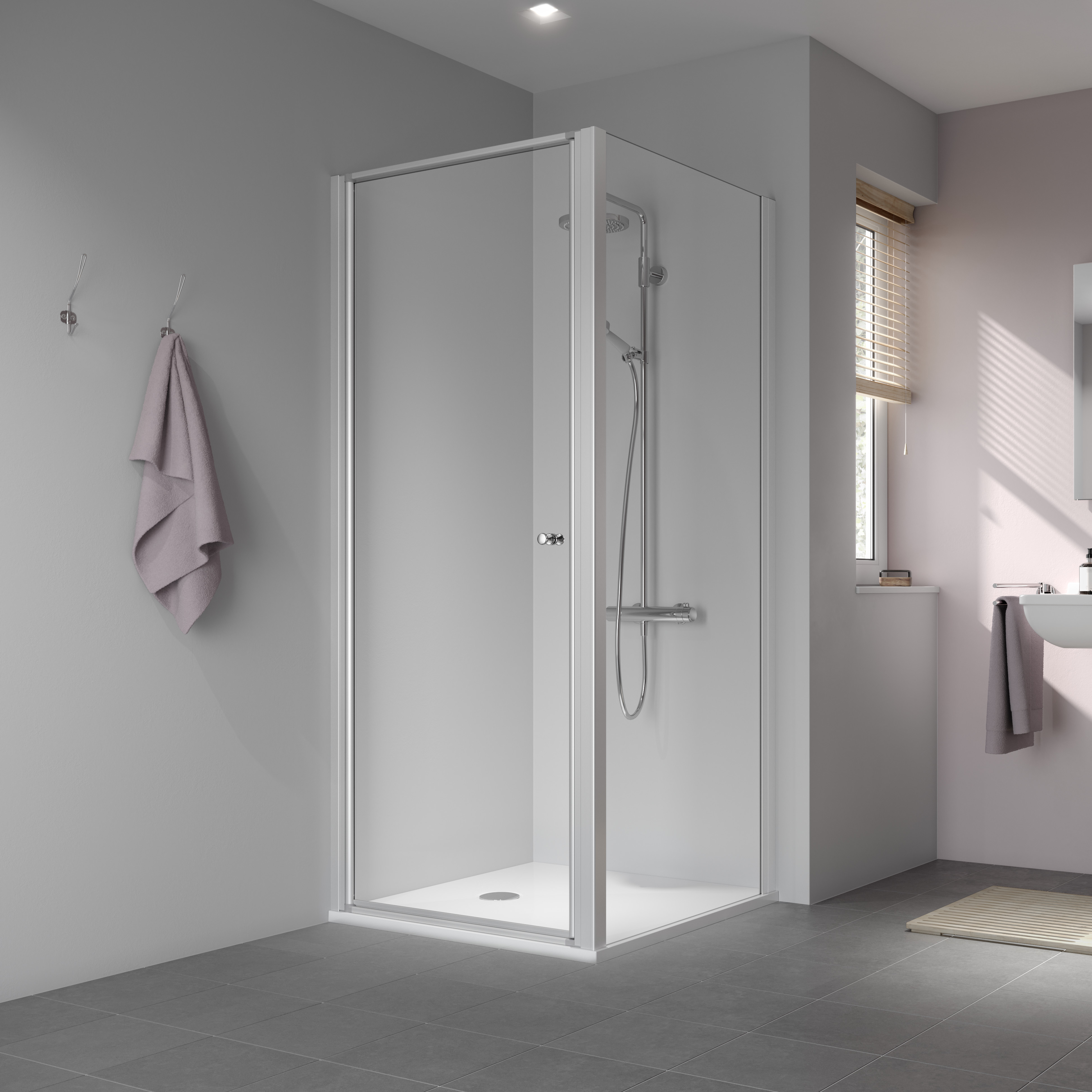 Kermi Duschtür Schwingtür mit Festfeld rechts für Nische und Ecke „IBIZA 2000“ 175 cm Glas Klar, Profile Silber Mattglanz, Anschlag rechts, Drehtür einteilig