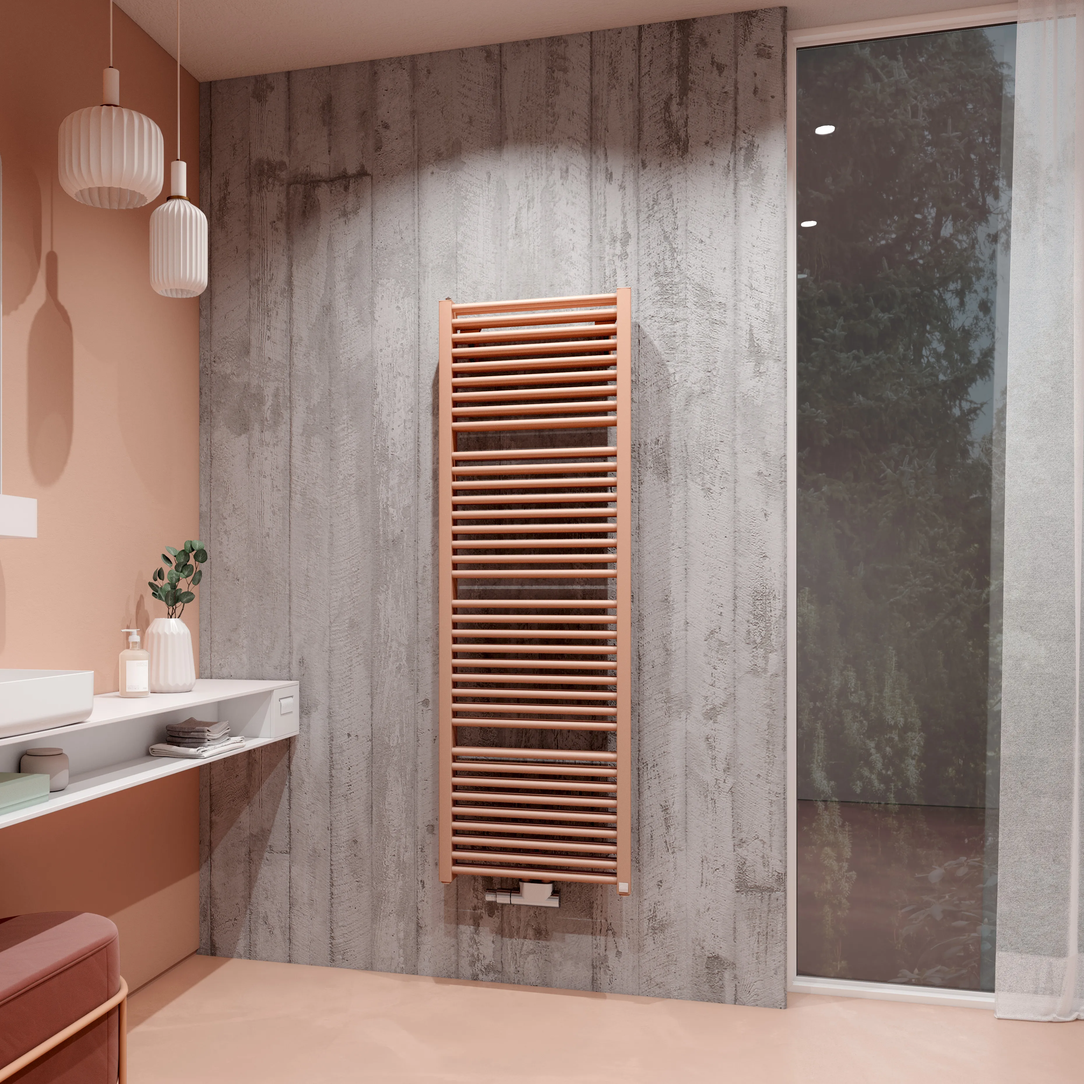 Designheizkörper mit waagrechten Rundrohren in doppelreihiger Ausführung Durchmesser 20 mm und senkrechten Sammelrohren 74 × 33 mm als Trapezformohne sichtbare Schweißnähtezwischen den Rohrblöcken Abstände zur Handtuchaufhängungdie Befestigung erfolgt an der hinteren Reihe der Rundrohre mittels Laschendas beigepackte Befestigungsset entspricht der VDI 6036, Anforderungsklasse 1 und 2, Anforderungsklasse 3 auf Anfrage möglichbauseits ist der Wandbaustoff auf ausreichende Tragfähigkeit zu prüfenAusrichtung horizontal und vertikal möglichSichtteile des Zubehörs in Heizkörperfarbegeprüft nach DIN EN 442die Bauausführung entspricht den ehemaligen BAGUV-Richtlinienausgezeichnet mit dem RAL-GütezeichenSerienfarbe weiß (RAL 9016), gegen Aufpreis Heizkörper-Farbkonzept möglichLackierung: Zweischichtlackierung gem. DIN 55900, Grundierung (ETL), Pulverbeschichtung (EPS), emissionsfrei auch im HeizbetriebTechnische Daten:Abmessungen H/T/L: 1188 × 74 × 484 mmAnschlüsse: 2 × G 1/2″ Innengewinde nach unten, 2 × G 1/2″ Innengewinde mittig nach untenEntlüftung: G 1/4″ Innengewinde nach oben, linksNabenabstand: 50 mm Mittenanschluss oder von Baulänge abhängigBetriebsdruck: max. 6 barMedium: Heißwasser bis 110 °CZuordnung E-Patrone: 800 WWärmeleistung:EN 442: 834 W70/55/20: 676 W55/45/20: 439 W70/55/24: 596 W55/45/24: 366 WLieferumfang:Heizkörper mit ZweischichtlackierungBefestigungssetSerie / Kollektion: Duett®Modell: DUN2MTyp: HeizkörperBetriebsdruck (max.): 6 barHeizkörperexponent: 1,2403empfohlener Heizstab: 800 WWärmeleistung in Watt:75/65/20: 834 W (EN 442)70/55/24: 596 W70/55/20: 676 W55/45/24: 366 W55/45/20: 439 WAbmessungen:Breite: 484 mmHöhe: 1188 mmTiefe: 74 mmNicht im LieferumfangAnschlussarmatur nicht mit im Lieferumfang enthalten. Bitte separat bestellen.