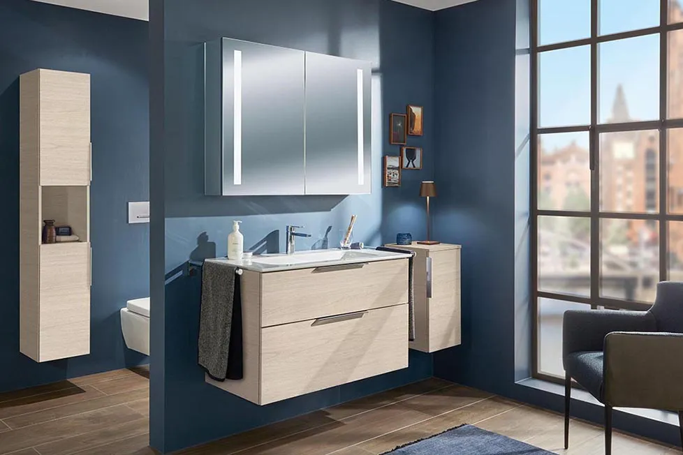 Waschtischunterbau passend zuKeramik-Waschtisch Collaro 4334 45/46von Villeroy&Boch1 Türe Anschlag linksZum Öffnen bitte seitlich Wandabstandeinplanen, bei Auszügen links undrechts, bei Türen auf Seite derGriffleiste.Serie / Kollektion: 3wayModell: BR83022Typ: WaschtischunterschrankAußenform: RechteckMontage: Wand Steckdosen: nein Soft Closing (Tür): ja Schubladen: 0 Türen: 1 Anschlag: links Beleuchtung:Wandbeleuchtung: nein Innenbeleuchtung: nein Abmessungen:Breite: 400 mmHöhe: 517 mmTiefe: 347 mmPassliste:Collaro von Villeroy & Boch 433445LieferumfangWaschtischunterbau links 3way (BR830) 517x400x347 Anthrazit-Matt