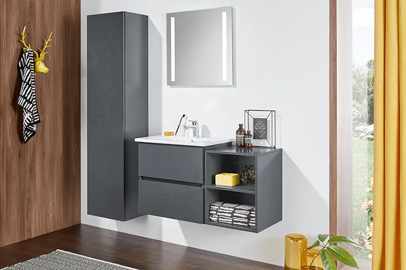 Sanipa Mittelschrank „Solo One“ 400 × 850 × 338 mm Anschlag links, in Eiche Nebraska, Anschlag links