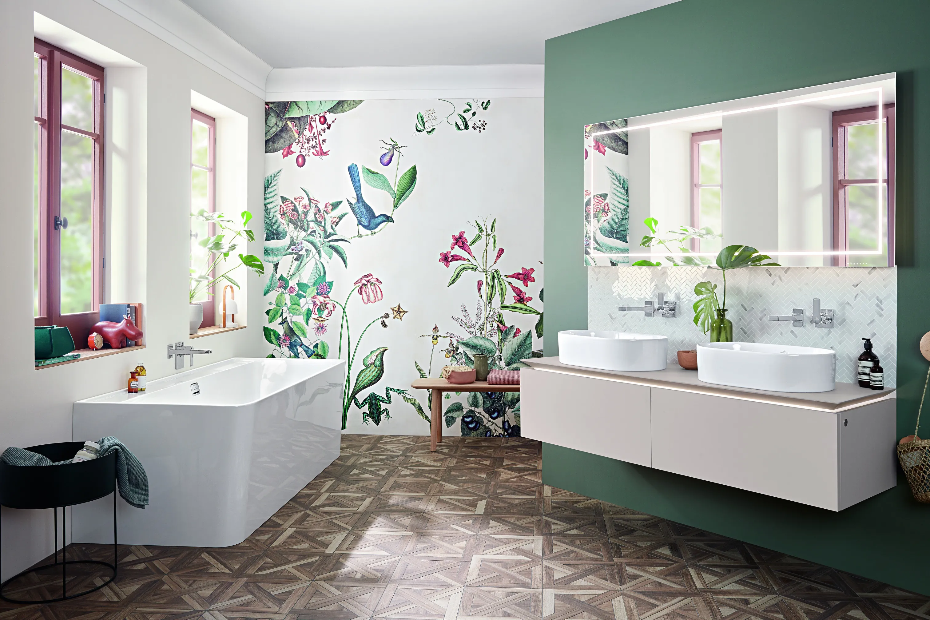 Markantes Charakterelement der Collaro-Kollektion ist ihre filigrane Gestaltung. Die Badkeramik zeichnen dünne Wände und enge Radien sowie schmale Kanten aus und ergänzen somit das sachliche Design der dazugehörigen Badmöbel perfekt. Die Gestaltung der Badmöbel zeichnet zusätzlich noch eine markant abgesetzte, teilweise mit LEDs beleuchtete Designkante aus, die den eigenständigen Look der Kollektion prägt.