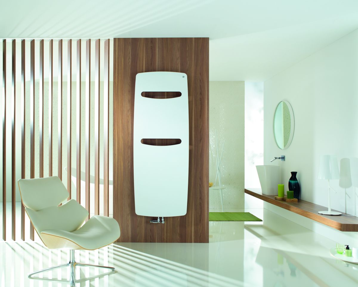 Zehnder Design-Heizkörper „Vitalo Spa“ für Warmwasser-Zentralheizung mit 50 mm-Mittelanschluss 49 × 120 cm in Verkehrsweiß (RAL 9016, glänzend)