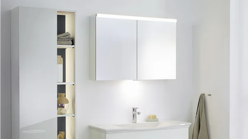 burgbad Badmöbelset „Orell“ Griffleiste, Platin, in Weiß Matt mit Laserkante