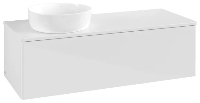 Villeroy & Boch Antao, Waschbeckenunterschrank, Holz, Maße: 1200 × 360 × 500 mm, Eckig, ohne Hahnlochbohrung, wandhängend, Waschbecken links, im Lieferumfang: 1 × Waschbeckenunterschrank, 1x Raumsparsiphon, 1 × Befestigung, Kombinierbar mit: Antao: 4A72 40, 4A73 51, Loop & Friends: 4A45 00/01, 4A46 00/01, 4A47 00/01, 4A49 00/01, Collaro: 4A18 40, 4A19 56, 4A21 38, 4A20 56, Artis: 4179 43,4178 41, 4172 58, Definierte Waschbecken bitte separat bestellen, Front ohne Struktur, 0GF Glossy White Lacquer, GF Glossy White Lacquer