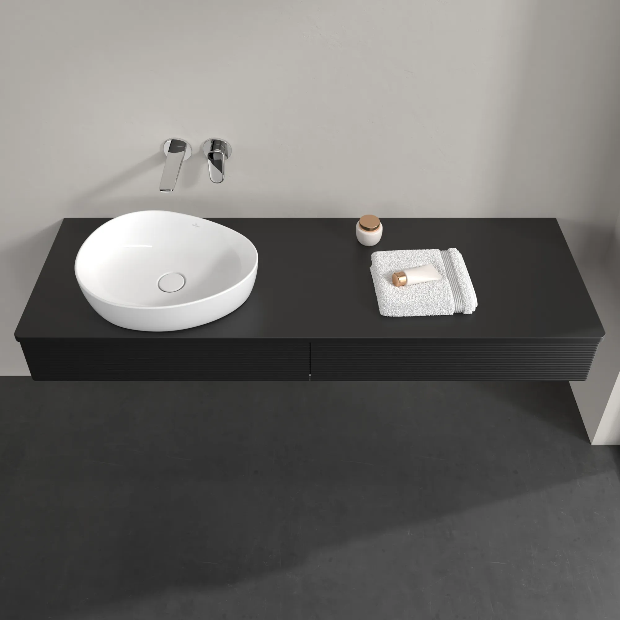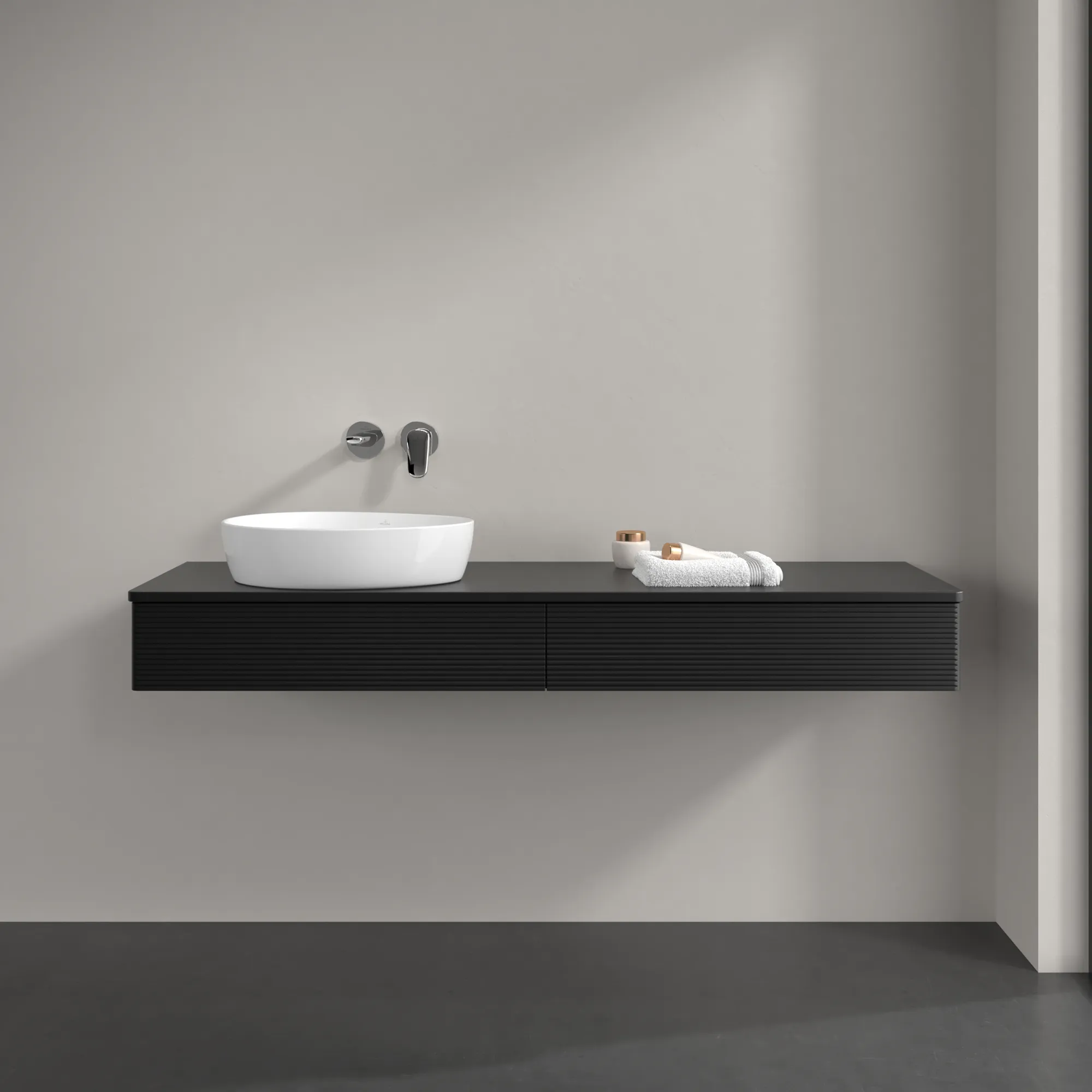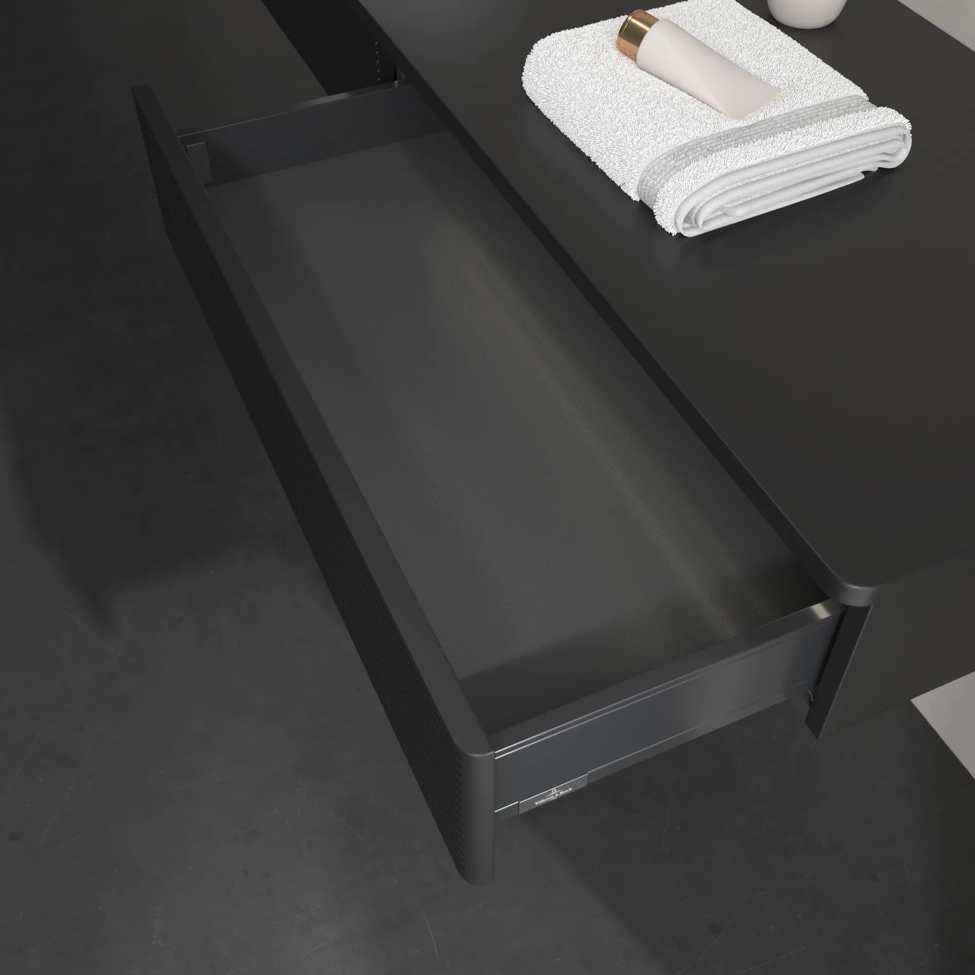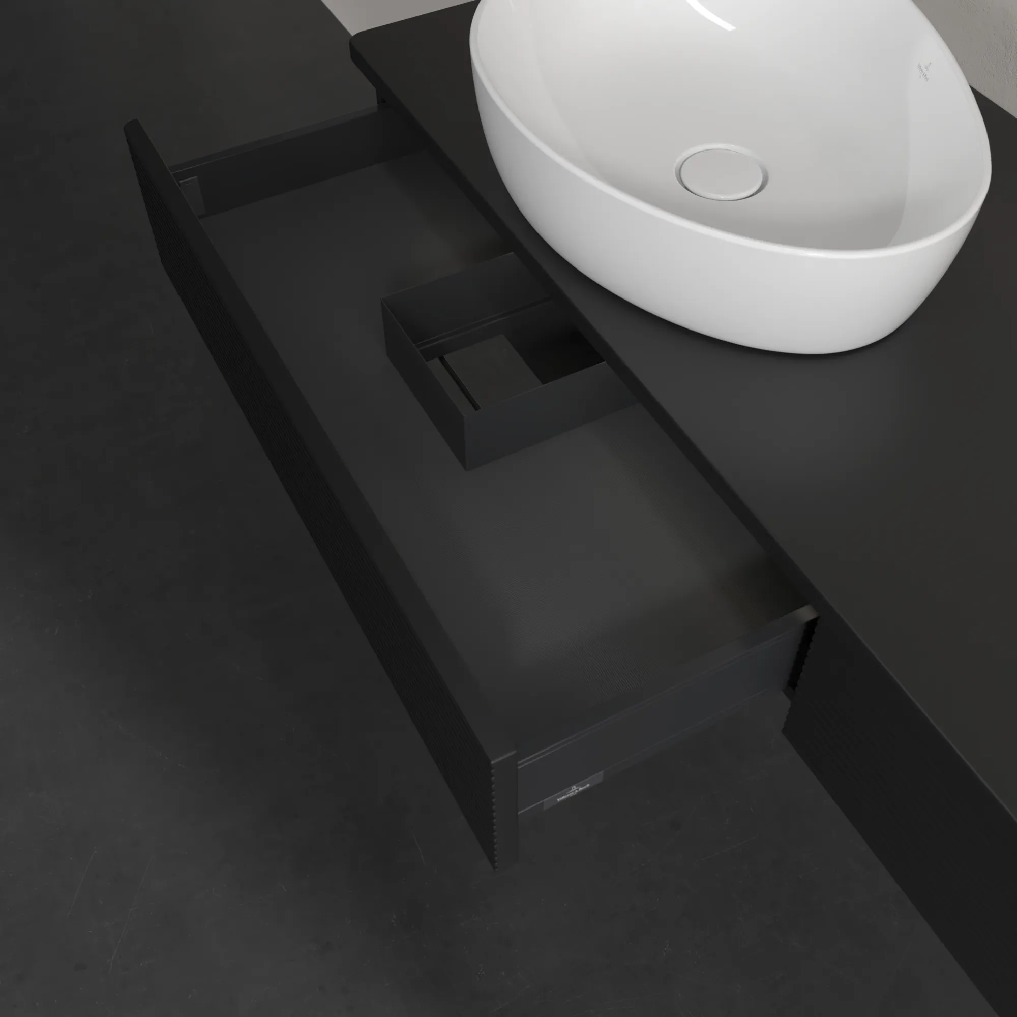 Produktinformationen "Villeroy & Boch Waschtischunterschrank „Antao“ 1600 × 190 × 500 mm Black Matt Lacquer, für Becken links, mit Beleuchtung"