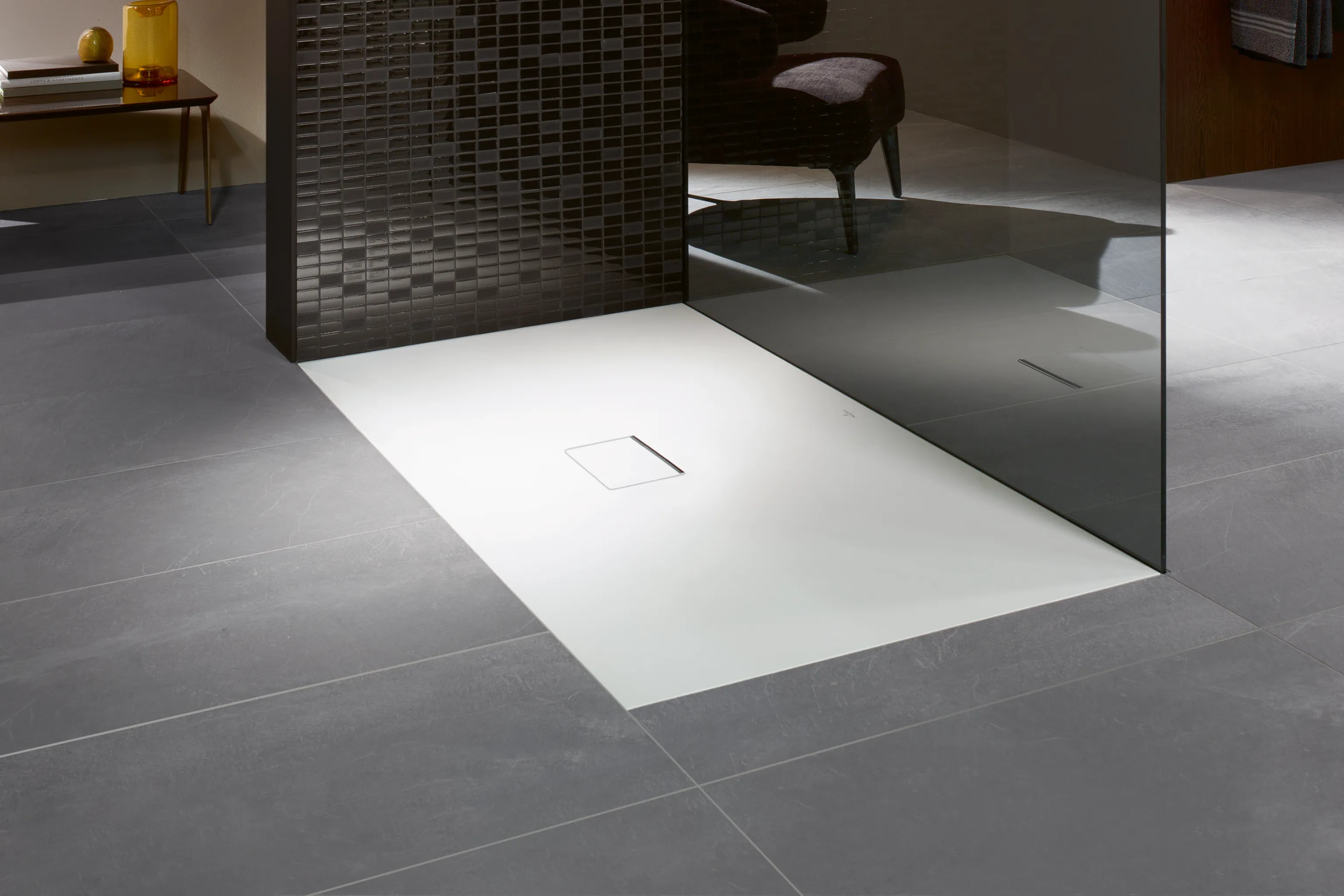 Villeroy & Boch rechteck Duschwanne „Squaro Infinity“ lange Seite geschnitten an der Wand 90 × 70 cm ohne Oberflächenbeschichtung, in Anthracite